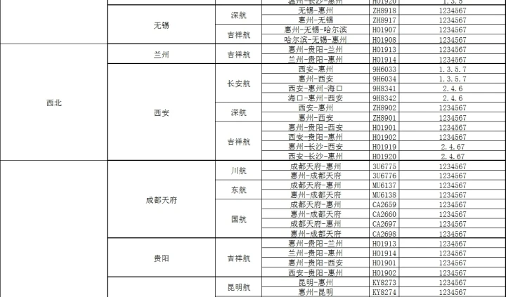 (10)西安:每天3班,周2467每天最高可達(dá)到4班