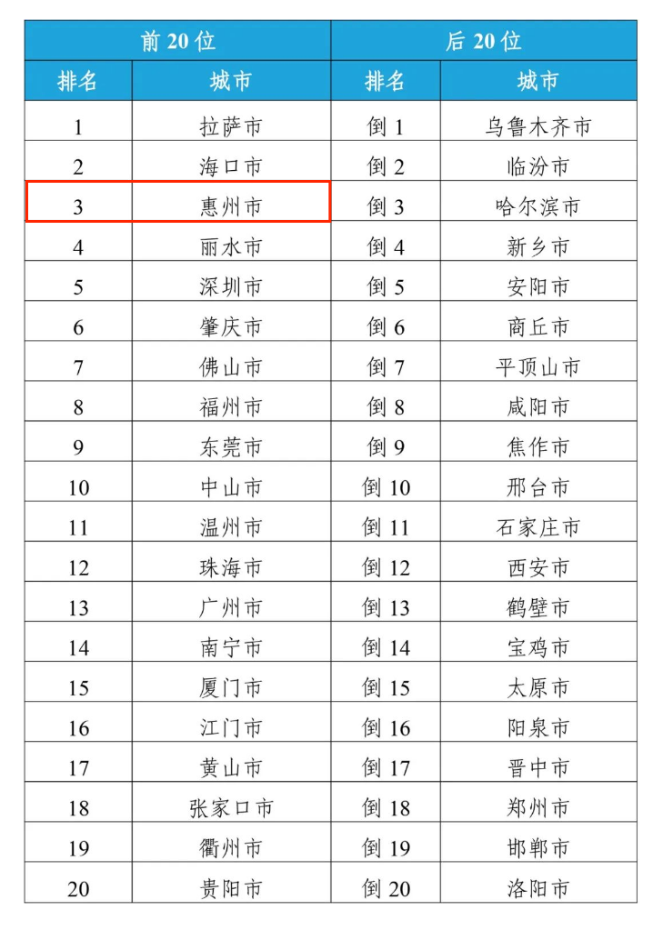 2月惠州環(huán)境空氣質(zhì)量全國(guó)第三