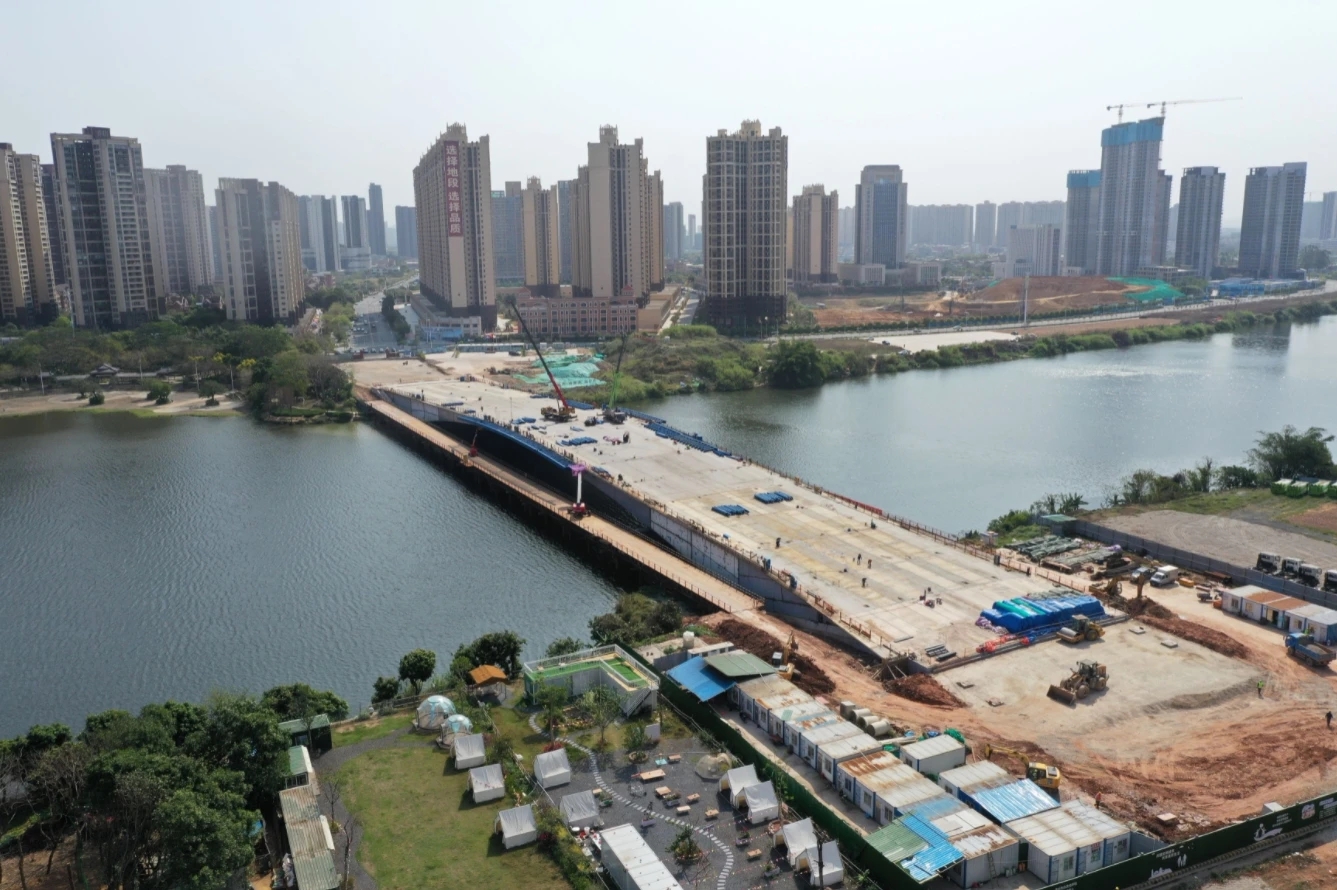 李建全介紹,兩座大橋同步施工,目前完成工程量的90%,計劃6月底建成通車。金山湖片區(qū)一號橋、二號橋通過橫一路(建設中)連接,成為金山湖湖心島與外界連通的交通要道,整體走向與三環(huán)南路平行。建成通車后,將串聯(lián)河南岸麥地片區(qū)與金山湖島內及湖山片區(qū),有效緩解三環(huán)路交通壓力,在完善片區(qū)交通路網(wǎng)的同時,也讓市民出行更加便利。