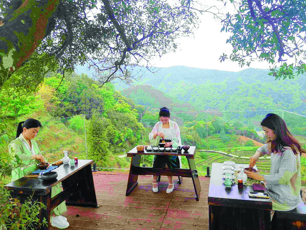為了更好了解惠州今年春茶生產銷售情況,助力茶產業(yè)高質量發(fā)展,惠州市茶文化促進會舉辦2024年茶山行活動,首站走進嵐滋茶園。這是點茶師們在觀景臺上支起茶桌,開展宋式點茶活動。