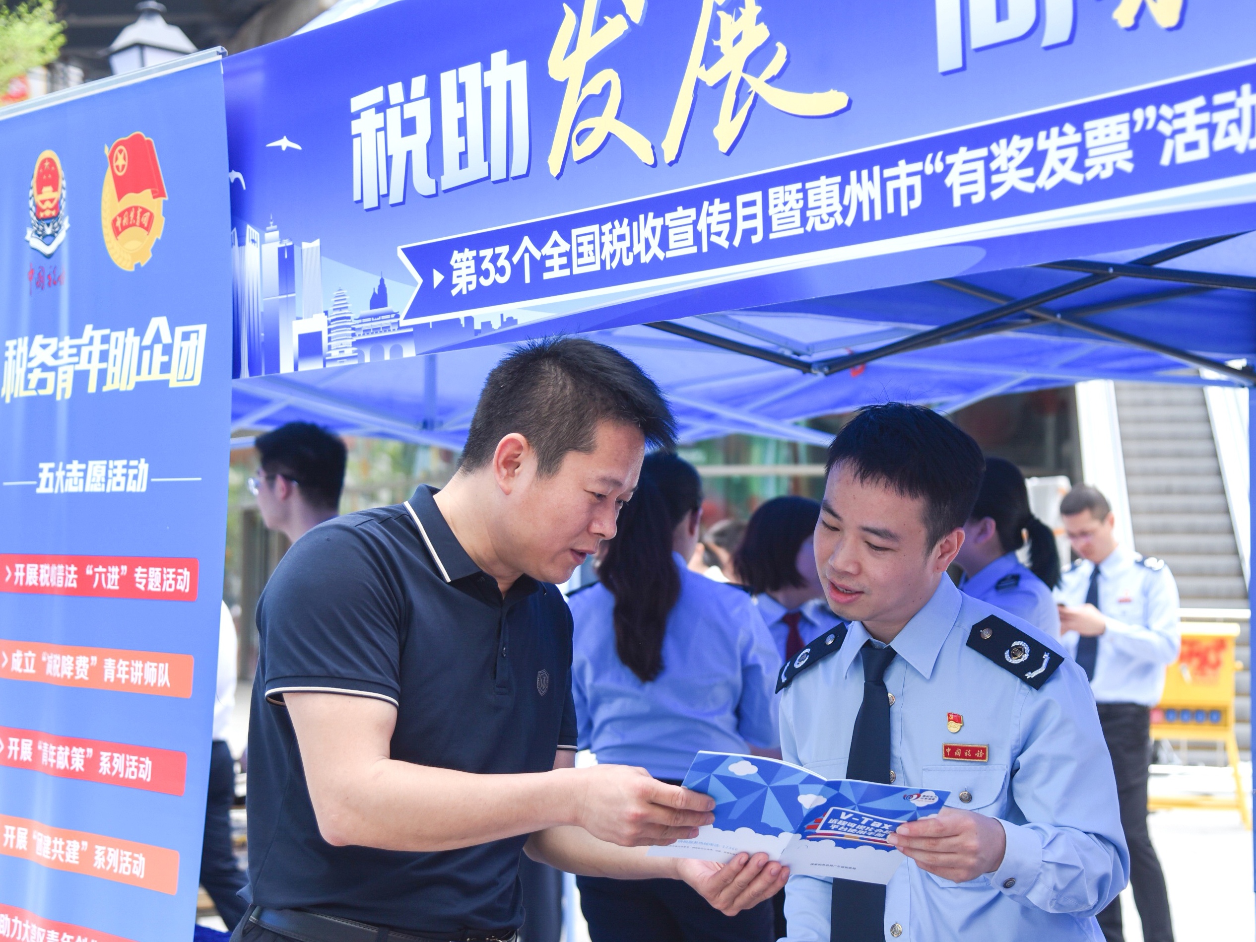 “‘有獎發(fā)票’活動是為接下來稅收宣傳月各項活動‘打頭陣’。”活動現(xiàn)場,惠州市稅務(wù)局黨委書記、局長劉柯表示,今年惠州稅務(wù)部門將圍繞“稅助發(fā)展 向新而進(jìn)”這一主題,繼續(xù)開展便民辦稅春風(fēng)行動,為全市重點項目、重點企業(yè)提供一體化、全周期稅務(wù)服務(wù),助力打造一流營商環(huán)境。同時,常態(tài)化開展“稅費服務(wù)體驗師”“稅法進(jìn)校園”“稅法伴我行”等主題宣傳活動,讓更多群體感受到稅費服務(wù)新氣象。