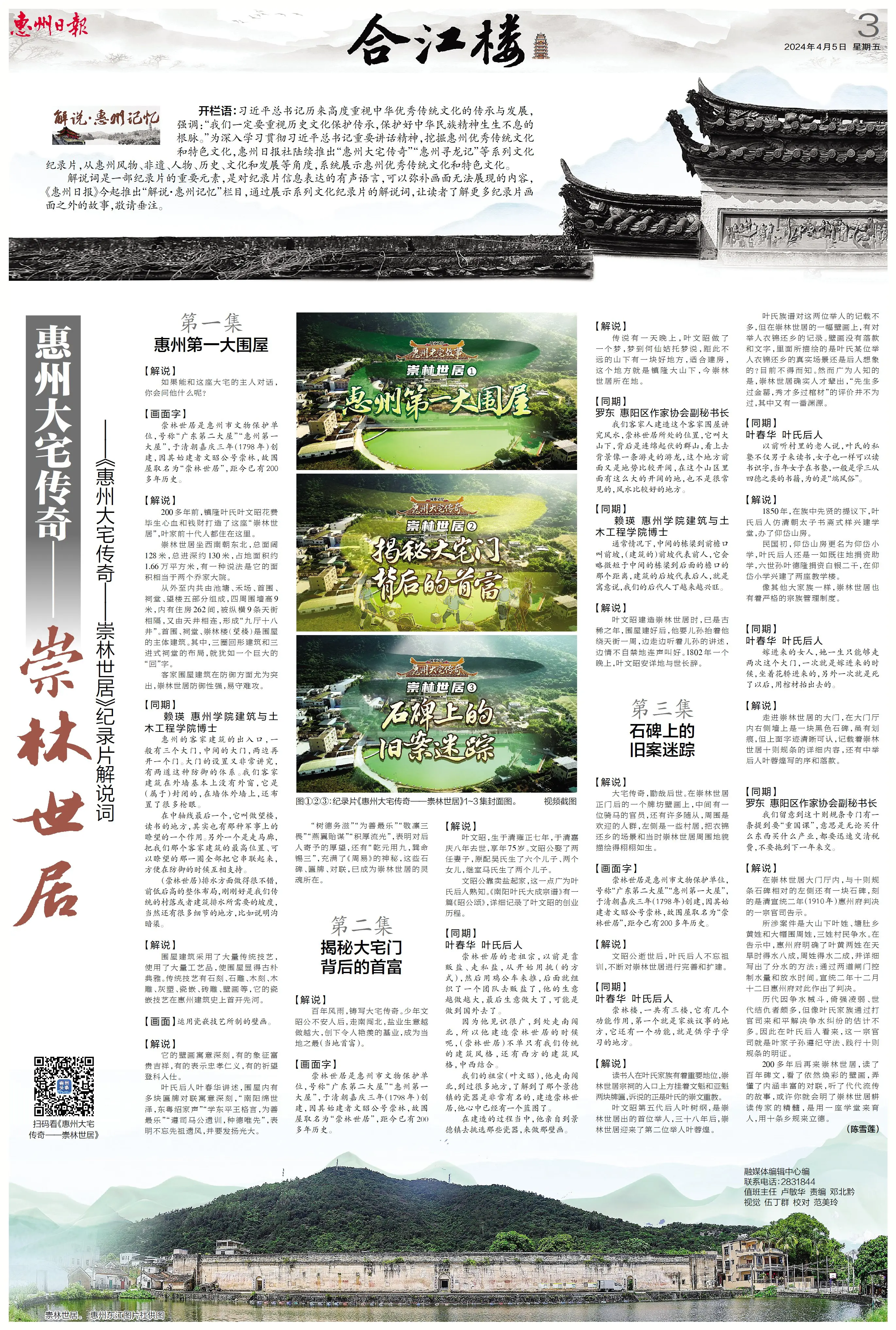 開欄語:習近平總書記歷來高度重視中華優(yōu)秀傳統(tǒng)文化的傳承與發(fā)展,強調(diào):“我們一定要重視歷史文化保護傳承,保護好中華民族精神生生不息的根脈。”為深入學習貫徹習近平總書記重要講話精神,挖掘惠州優(yōu)秀傳統(tǒng)文化和特色文化,惠州日報社陸續(xù)推出“惠州大宅傳奇”“惠州尋龍記”等系列文化紀錄片,從惠州風物、非遺、人物、歷史、文化和發(fā)展等角度,系統(tǒng)展示惠州優(yōu)秀傳統(tǒng)文化和特色文化。