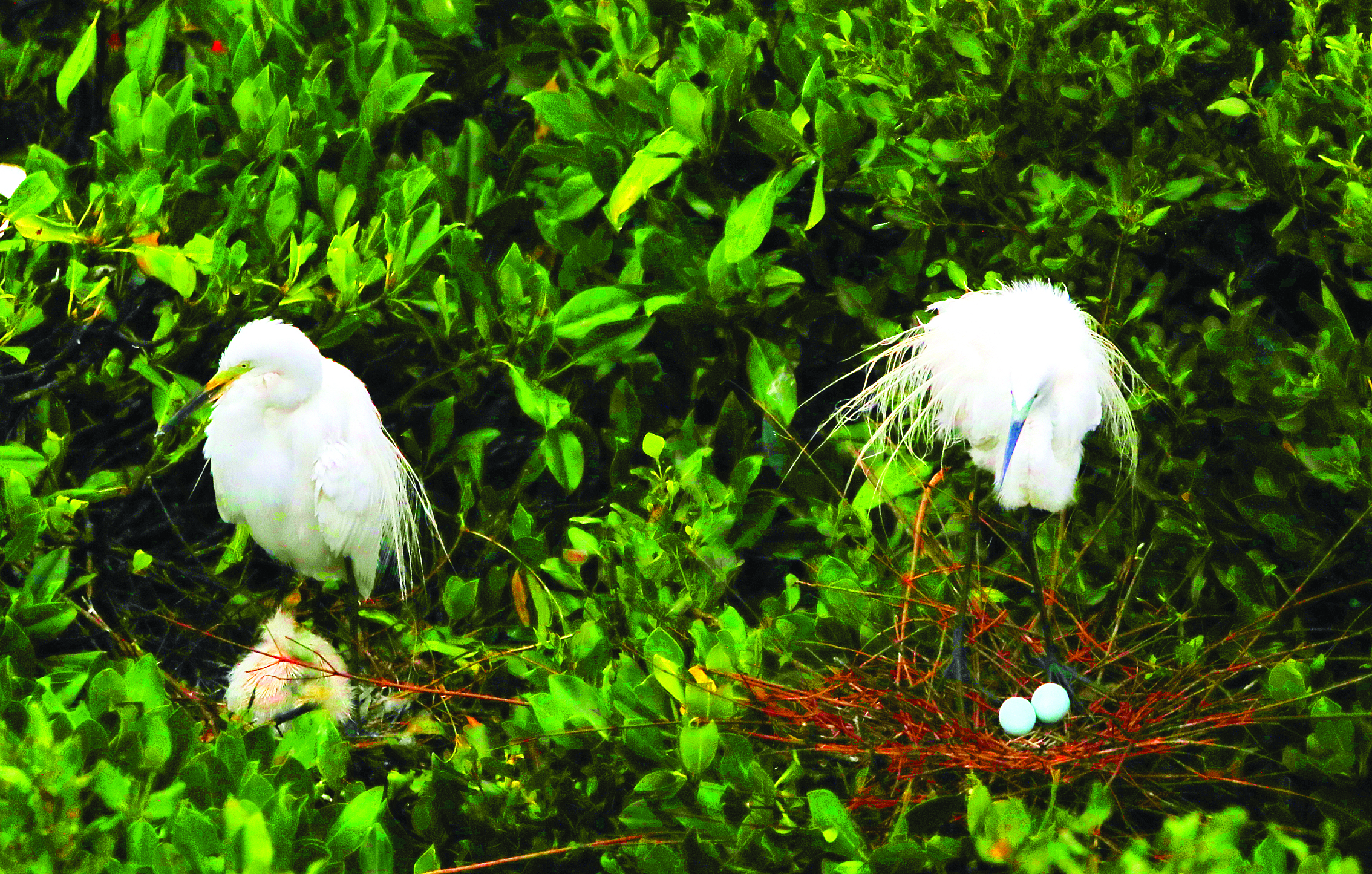 春暖花開,萬(wàn)物復(fù)蘇。棲息在惠東縣黃埠鎮(zhèn)白沙村紅樹林濕地公園里的白鷺又進(jìn)入了繁殖季節(jié)。郁郁蔥蔥的紅樹林成了鳥兒們舒適的棲息地,筑巢、交配、產(chǎn)蛋、孵化……它們不誤天時(shí),繁衍生息。
