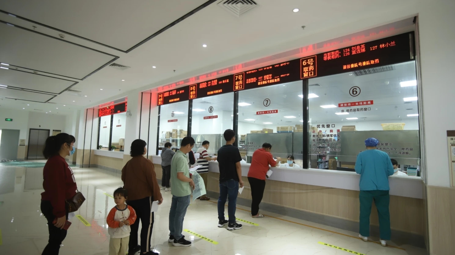市民在博羅縣人民醫(yī)院排隊取藥。