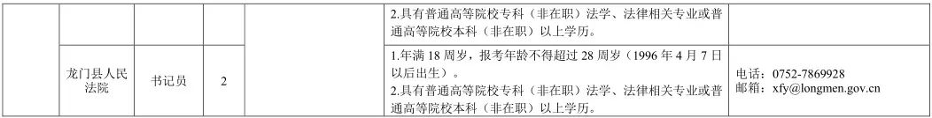 (二)書記員23名(含市法院6名、惠城法院6名、惠陽法院6名、博羅法院3名、龍門法院2名)。
