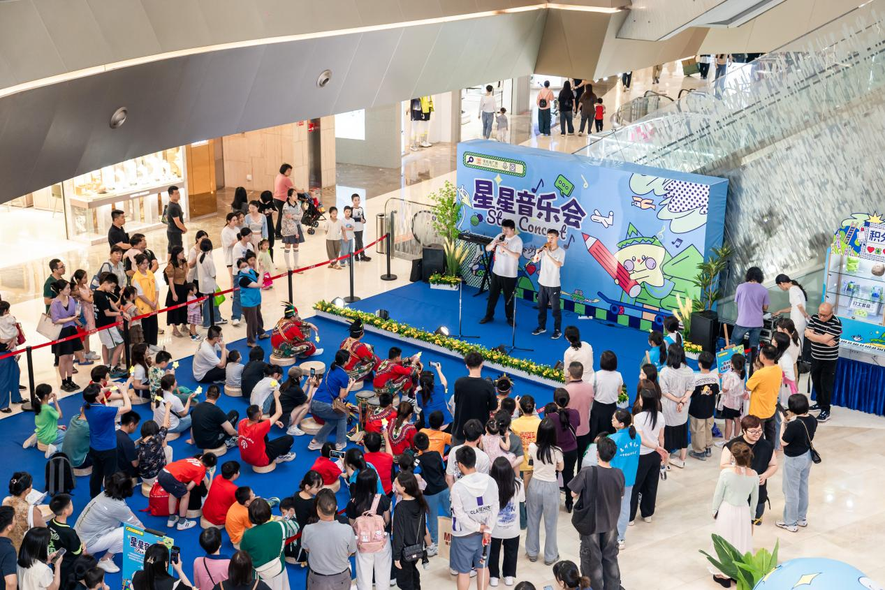 表演結(jié)束后,“星兒”們?cè)谥驹刚叩呐惆橄屡c場(chǎng)內(nèi)市民進(jìn)行愛的傳遞——融合擊掌。除了音樂會(huì),現(xiàn)場(chǎng)還設(shè)置了互動(dòng)展,包括含有孤獨(dú)癥相關(guān)知識(shí)的轉(zhuǎn)轉(zhuǎn)墻,來自星星孩子的畫作展示,以及傳遞愛的扭扭蛋互動(dòng)游戲,更有超大LED屏持續(xù)播放孤獨(dú)癥宣傳視頻。據(jù)悉,互動(dòng)展將持續(xù)展出近一個(gè)月時(shí)間。