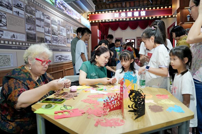 惠城非遺展示館現(xiàn)場(chǎng)剪紙教學(xué)。惠州日?qǐng)?bào)記者陳濤 攝