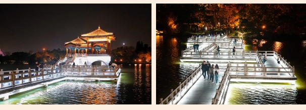 九曲橋上的燈光點(diǎn)點(diǎn)如星