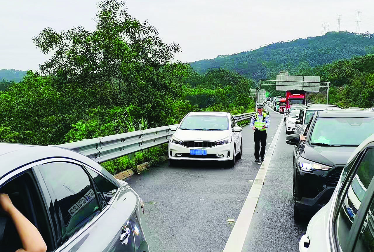“本想趁著‘五一’假期放飛心情,沒想到爆胎了,困在高速公路上,幸好有你們幫忙……”5月1日15時(shí)許,市公安局交警支隊(duì)高二大隊(duì)執(zhí)勤民警巡邏至從莞高速(往廣州方向)58公里路段時(shí),發(fā)現(xiàn)一輛小車停靠在應(yīng)急車道上未做安全防護(hù)措施,存在較大安全隱患。民警立即將警車停到該車后面,做好安全防護(hù)措施后上前了解情況。