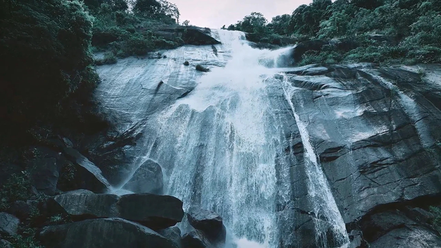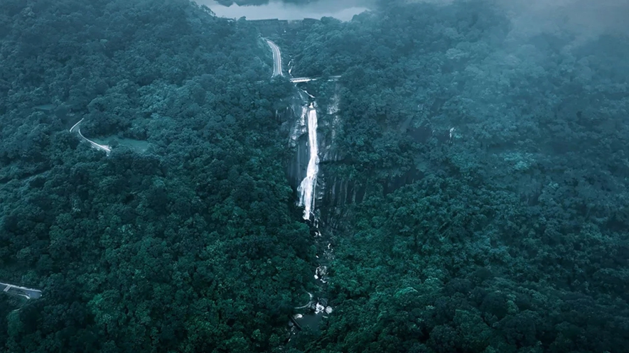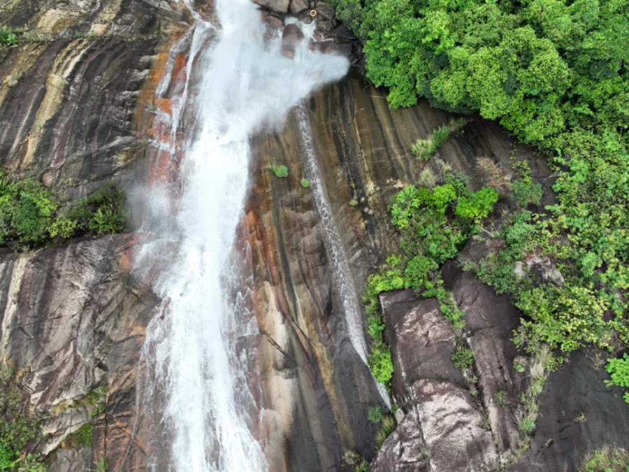 盤龍瀑布地處博羅縣福田鎮(zhèn)。在山下遙望盤龍瀑布,飛流直下的水流宛如一條白色的綢帶,從高聳的山崖上奔騰而下,帶著一種仙氣騰騰的美感。連續(xù)多天的降雨,讓這條瀑布顯得更加磅礴壯觀,蕩氣回腸,上演著一場又一場的視覺盛宴。