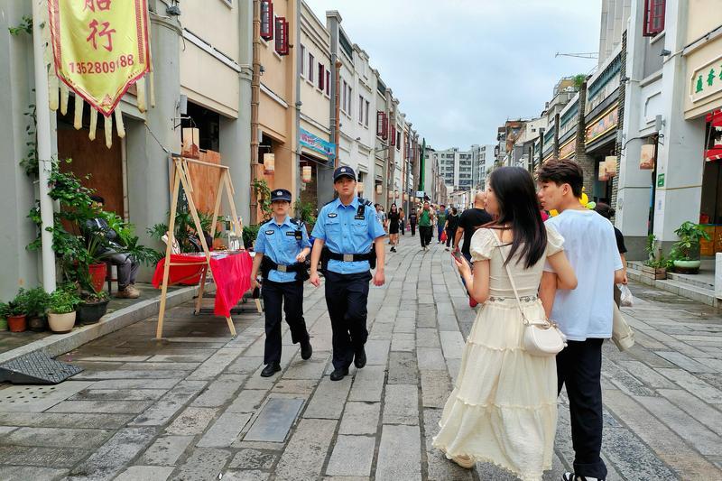 民警在市區(qū)水東街巡邏。