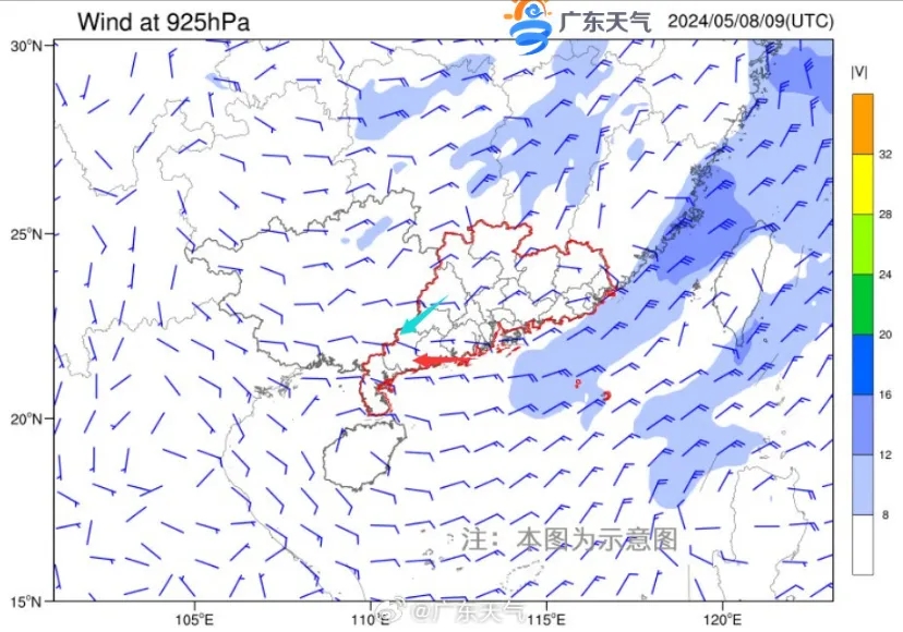 9~10日,受南風回流影響,廣東中西部有雷陣雨局部大雨,其余地區(qū)多云,有分散(雷)陣雨。