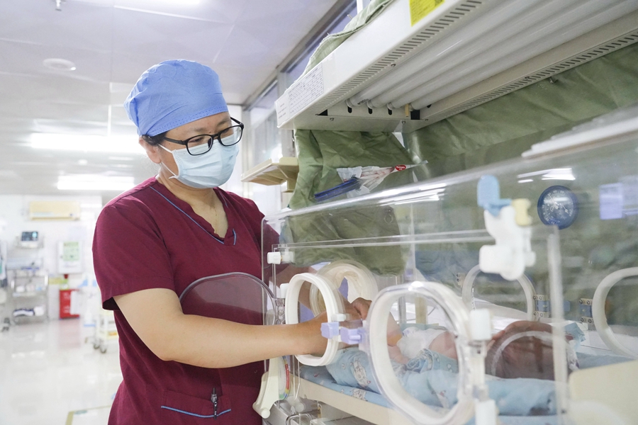 李秀華特喜歡湊近一個個“保溫箱”,觀察新生兒的一舉一動。她說,這是女性本能,也是母性使然。從接到患兒開始,新生兒科就啟動“一人一鳥巢”精細化管理模式,快速為其搭建“生命通道”——開展PICC(經(jīng)外周靜脈置入中心靜脈導管)處理,給予營養(yǎng)、藥物支持。