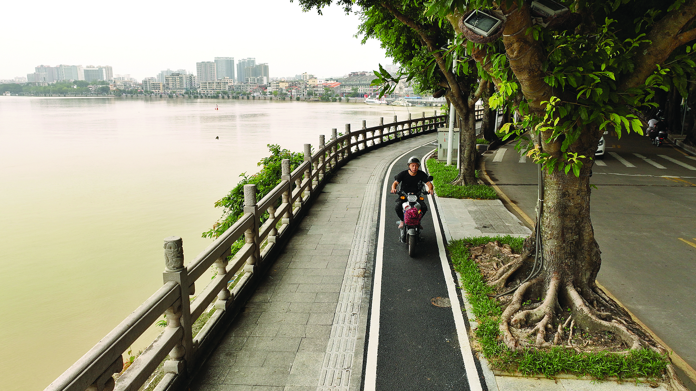 惠州日報(bào)訊 (記者周智聰 通訊員高揚(yáng) 邱楚瑜)惠州市區(qū)濱江西路慢行道改造工程日前完工。5月10日上午,記者在濱江西路看到,非機(jī)動(dòng)車、行人、機(jī)動(dòng)車各行其道、“互不打擾”。惠州市市政園林事務(wù)中心重新整合道路資源,著力提升市政設(shè)施的功能性與美觀性,助力創(chuàng)造慢行友好的交通環(huán)境,讓市民出行更安全、更舒心。