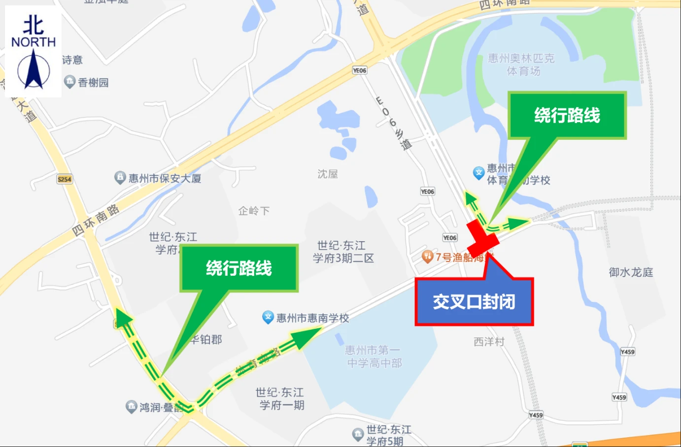 交通管制期間,往返惠州市第一中學(高中部)、世紀東江學府等學校或小區(qū)的行人和車輛,請通過演達大道繞行;往返惠州市體育運動學校、御水龍庭等學校或小區(qū)的行人和車輛,可通過惠州市體育運動學校西南側輔道繞行。