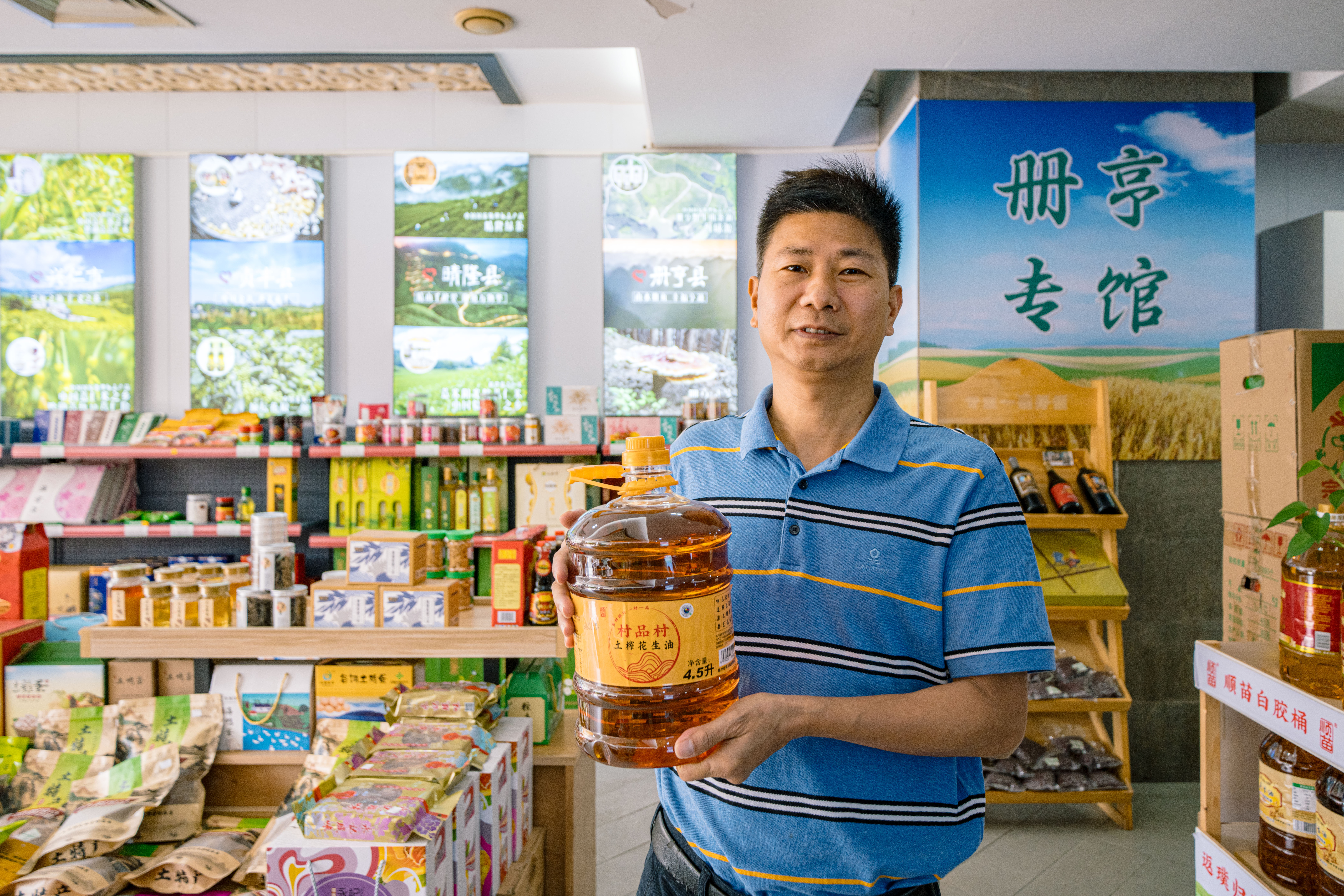惠州特色的生態(tài)米、土榨花生油、生態(tài)紅薯粉、客家山茶;貴州省的“山珍”野生菊花、林下種植的天麻、土家蜂蜜、刺梨汁、普安紅茶……走進廣東村品村農(nóng)業(yè)專業(yè)合作社位于惠城區(qū)麥地的農(nóng)產(chǎn)品展銷店,仿佛走進了農(nóng)產(chǎn)品“大觀園”,每一份農(nóng)產(chǎn)品的消費背后都連著一個產(chǎn)業(yè),支撐起農(nóng)民增收致富的希望。