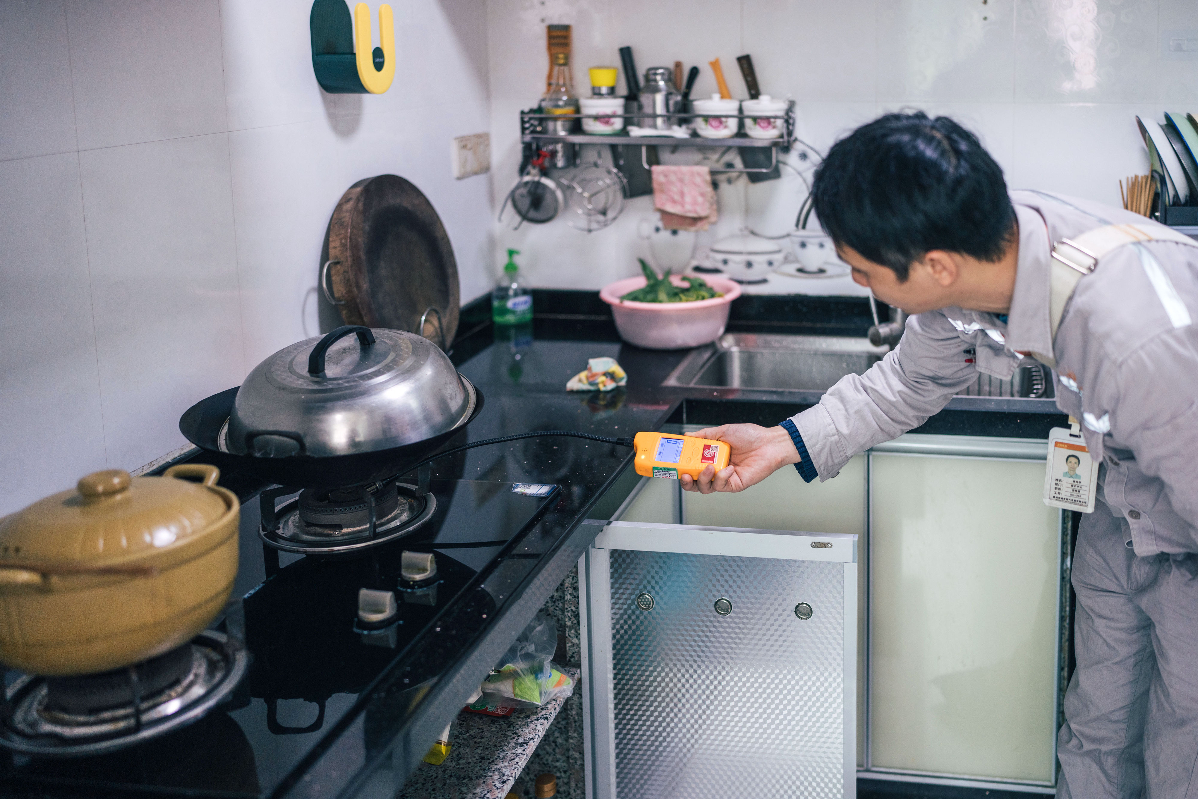 日前,惠州燃?xì)獍矙z員來到市民張女士家中開展入戶檢查。在觀察用戶家里的燃?xì)夤艿涝O(shè)備安裝是否合規(guī)之后,安檢員開始對用戶家中的所有燃?xì)庠O(shè)備設(shè)施進(jìn)行全面“體檢”。只見安檢員手持可燃?xì)怏w探測儀,從入戶表前管開始檢測是否存在漏氣。“在每個接口位置都要停留三秒鐘。燃?xì)獗怼⑷細(xì)夤堋⑷細(xì)饩摺⑦B接軟管等部位都要逐一檢查。”安檢員說道。有條不紊檢查完畢后,安檢員還耐心對用戶進(jìn)行燃?xì)獍踩脷饪破铡?