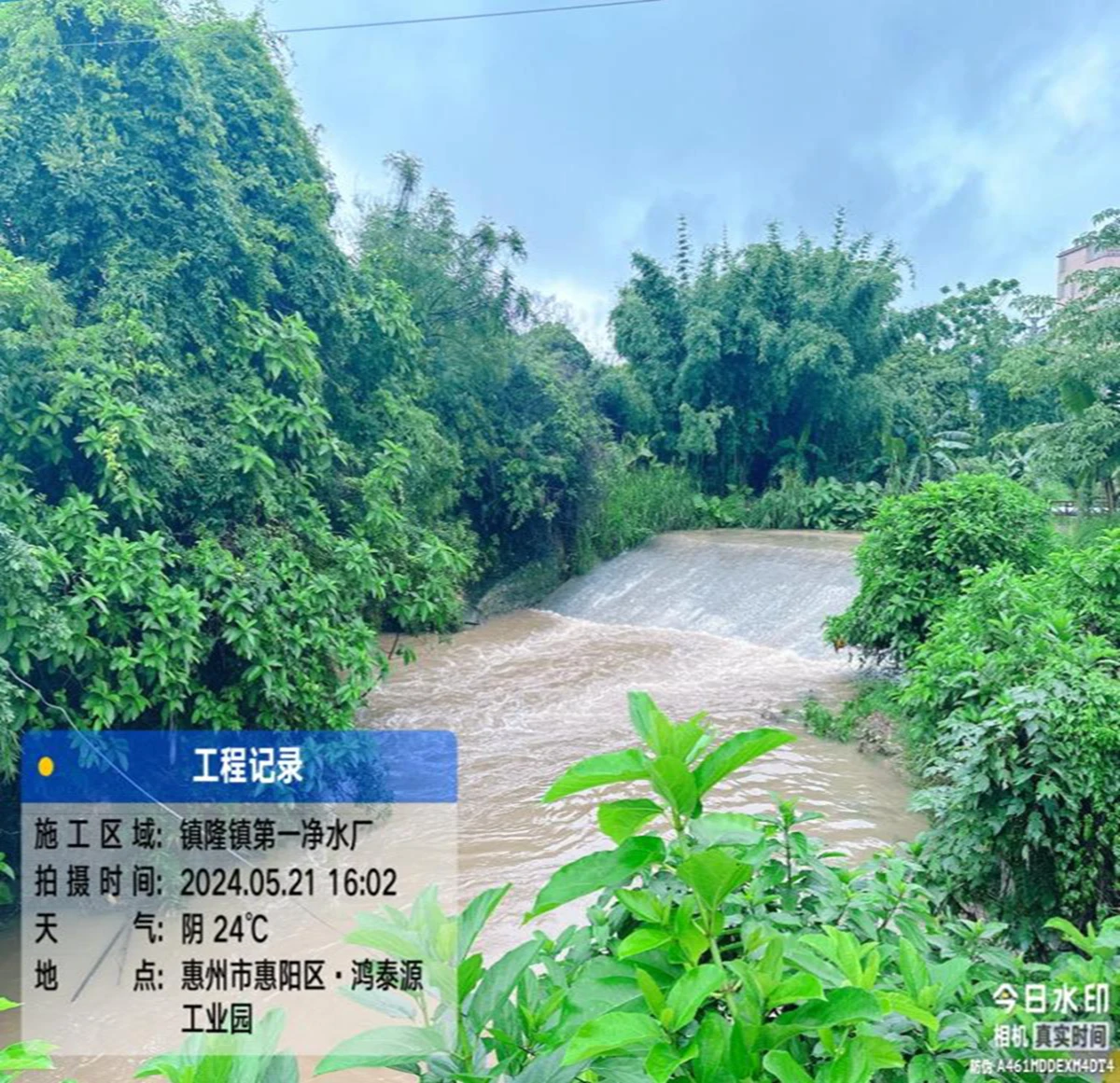 經現場核查和無人機巡查,最終鎖定污染源頭為惠陽區(qū)鎮(zhèn)隆壓縮中轉站收集的紅色水性染漿,因大雨沖刷導致污水進入河道,河水水體呈紅色。