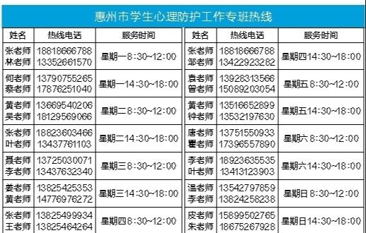 當(dāng)感到心理壓力過大時,不要猶豫,去尋求專業(yè)的心理咨詢,專業(yè)人士可以提供有效的幫助和指導(dǎo)。惠州市學(xué)生心理防護工作專班有非常豐富的“心靈守護”資源,老師們也一直在大家的身邊,有需求可撥打值班老師電話。