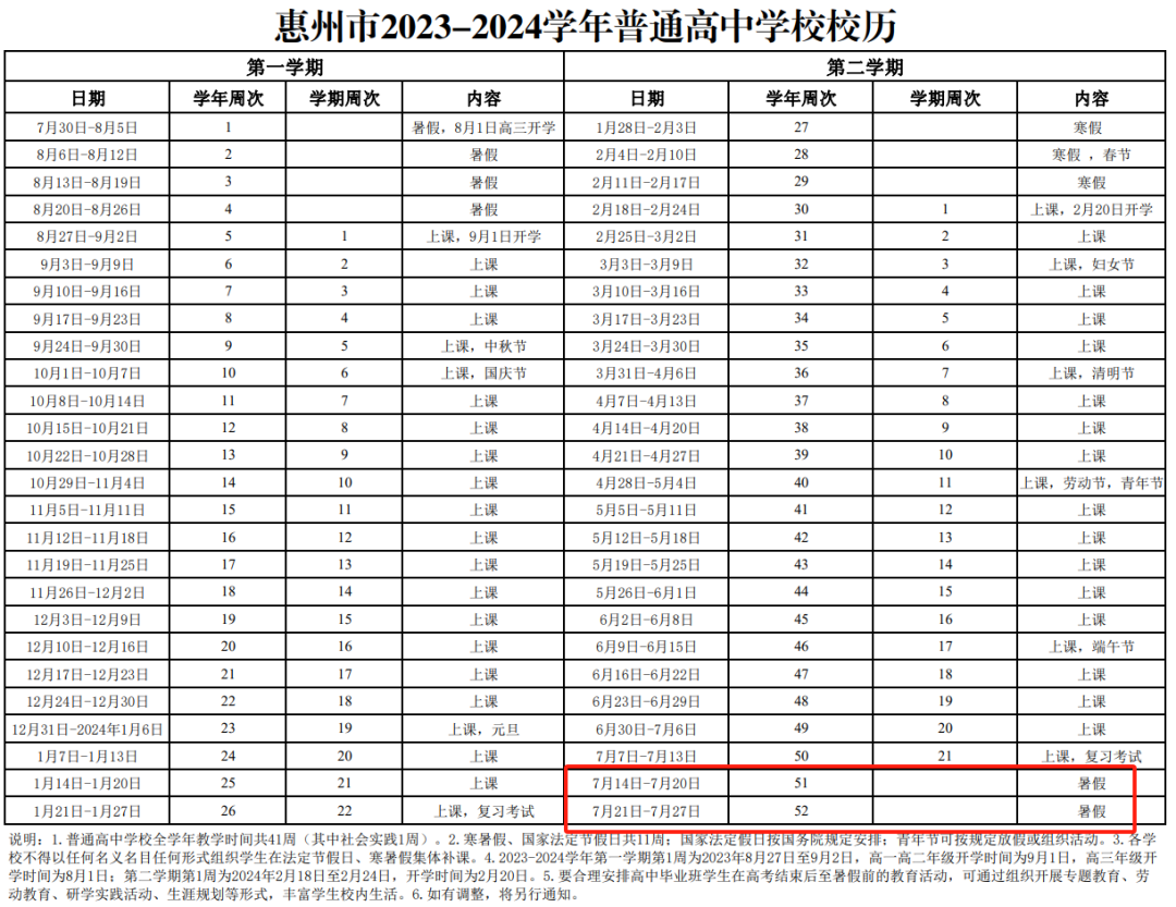 《惠州市教育局關(guān)于印發(fā)2023-2024學年普通中小學校校歷的通知》