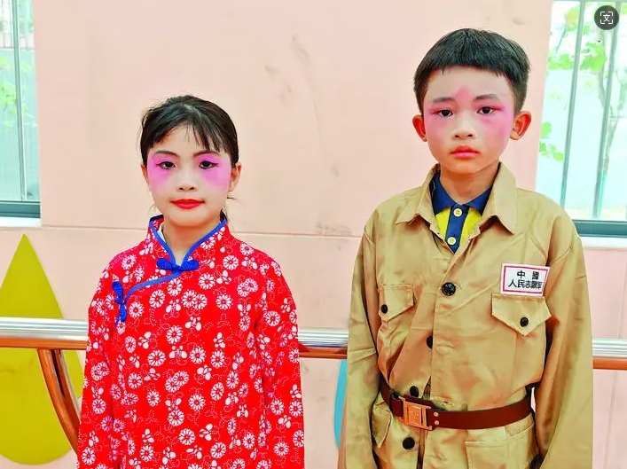 近日,惠城區(qū)江東學(xué)校慶“六一”文藝匯演活動(dòng)中,一場(chǎng)別開(kāi)生面的《京劇聯(lián)排》上演,引起現(xiàn)場(chǎng)師生陣陣掌聲。在這場(chǎng)表演中,四(2)班的陳爔玲是其中一個(gè)演員,她只有11歲,卻散發(fā)著舞臺(tái)人的自信和魅力。