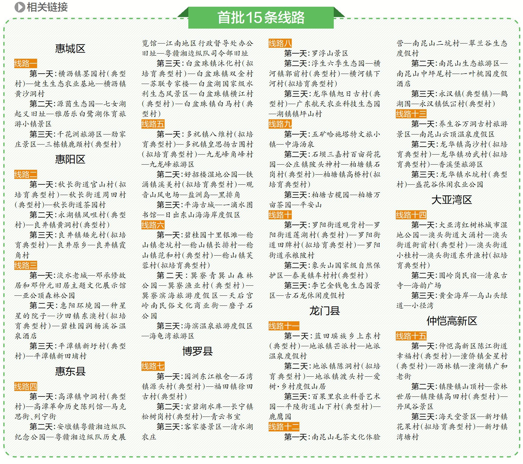 值得留意的是,15條線(xiàn)路的設(shè)計(jì)均極具惠州本地文化特色,每條線(xiàn)路包含至少1個(gè)“百千萬(wàn)工程”典型鎮(zhèn)村、1個(gè)紅色教育基地,讓廣大工會(huì)職工在療休養(yǎng)過(guò)程中既能休養(yǎng)身心,又不乏農(nóng)耕樂(lè)趣和教育意義,讓他們?cè)诏熜蒺B(yǎng)中實(shí)現(xiàn)“有所得、有所獲、有所悟”。