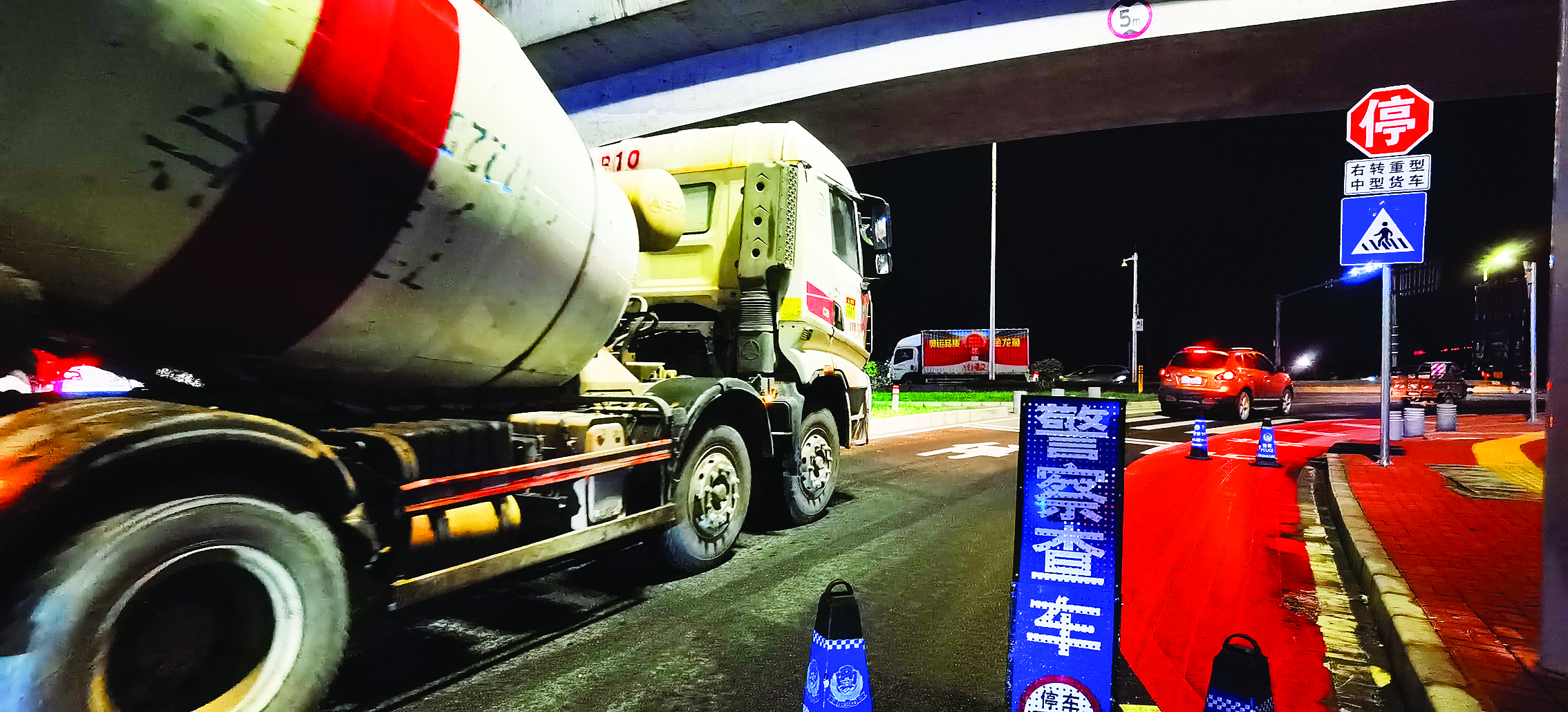 5月31日晚,惠州公安交警部門聯(lián)合交通運輸、城管執(zhí)法、派出所等部門在重點國省道開展全市統(tǒng)一整治行動。在惠州大道與金羅路路口,執(zhí)勤警力在右轉(zhuǎn)輔道設(shè)置提示牌,對過往大貨車、客車等重點車輛交通違法行為進行宣傳引導(dǎo)和執(zhí)法查處。