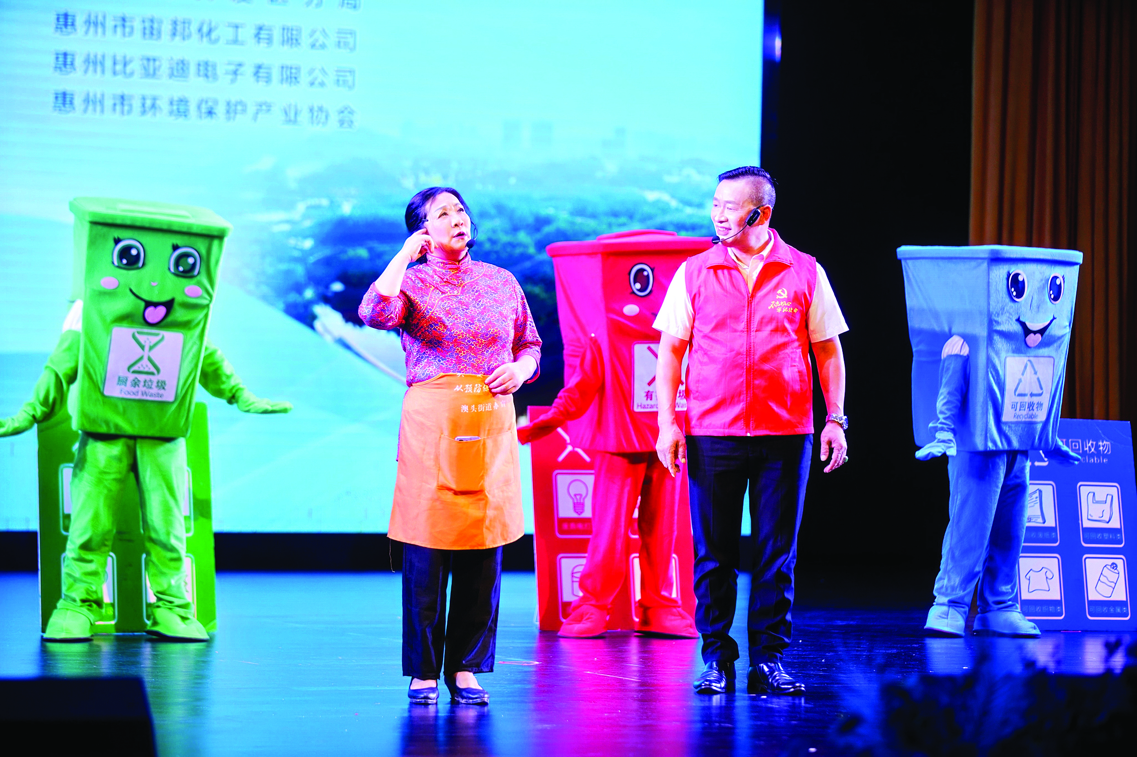 情景劇《一面紅旗鑄鐵軍,三個環(huán)境促發(fā)展》講述了黨建引領環(huán)保鐵軍堅定信念守護生態(tài)環(huán)境;“綠滿校園,愛溢人間”主題演講生動闡述生態(tài)文明教育的深刻意義;群口快板《綠美發(fā)展我先行》講述了推進綠美大亞灣生態(tài)建設的舉措和成效,以及市民如何通過吃住用行等身邊小事踐行環(huán)保理念;舞臺劇《美麗行動》通過情景表演,宣傳“無廢城市”建設和生活垃圾分類的意義,教育社區(qū)居民從源頭做到城鄉(xiāng)垃圾減量,營造全社會共同參與“無廢城市”建設的氛圍;學生代表現(xiàn)場宣讀倡議書,號召同學們要行動起來,從身邊小事做起,積極踐行環(huán)保理念,讓我們的家園變得更加美好。