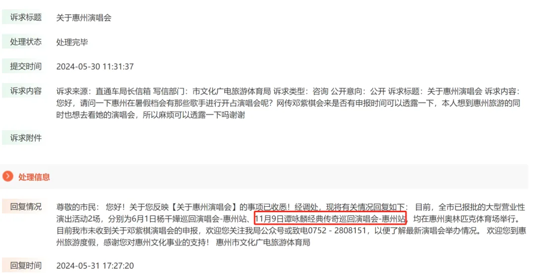 相關(guān)部門在惠州民意直通車回復(fù)網(wǎng)友
