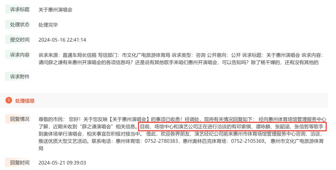 惠州還沒有收到歌手薛之謙的演唱會(huì)申請(qǐng)
