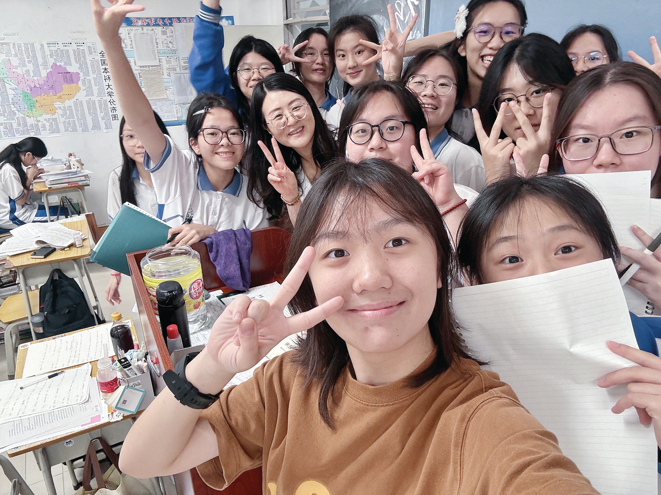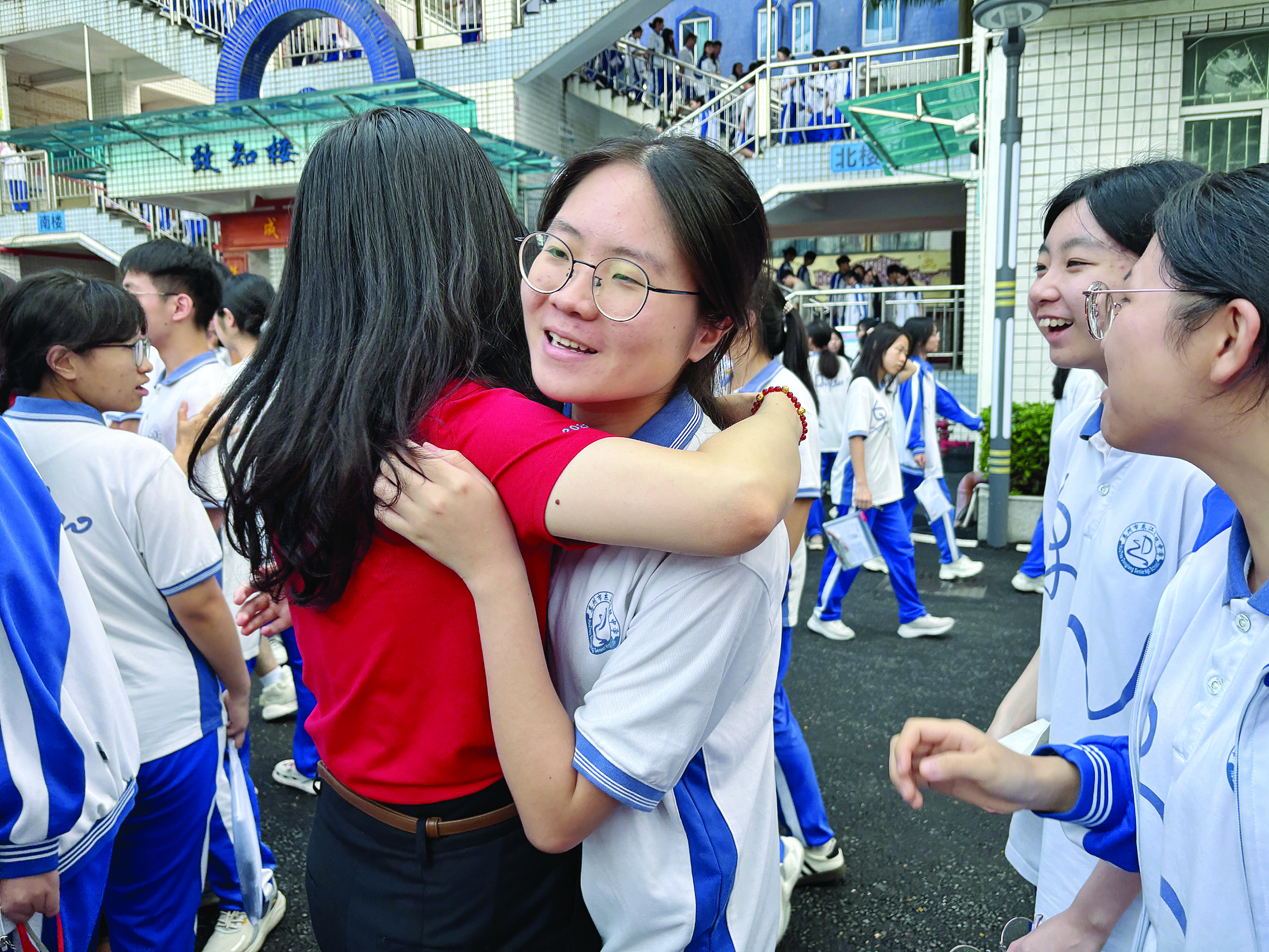 考場(chǎng)外,家長(zhǎng)們拿著鮮花翹首以盼,迎接孩子們出來。考場(chǎng)內(nèi),或歡笑、或淚水,每一個(gè)瞬間都是他們成長(zhǎng)的見證。考生們回到課室和宿舍,或忙碌收拾,或駐足留戀,回憶三年的點(diǎn)滴……