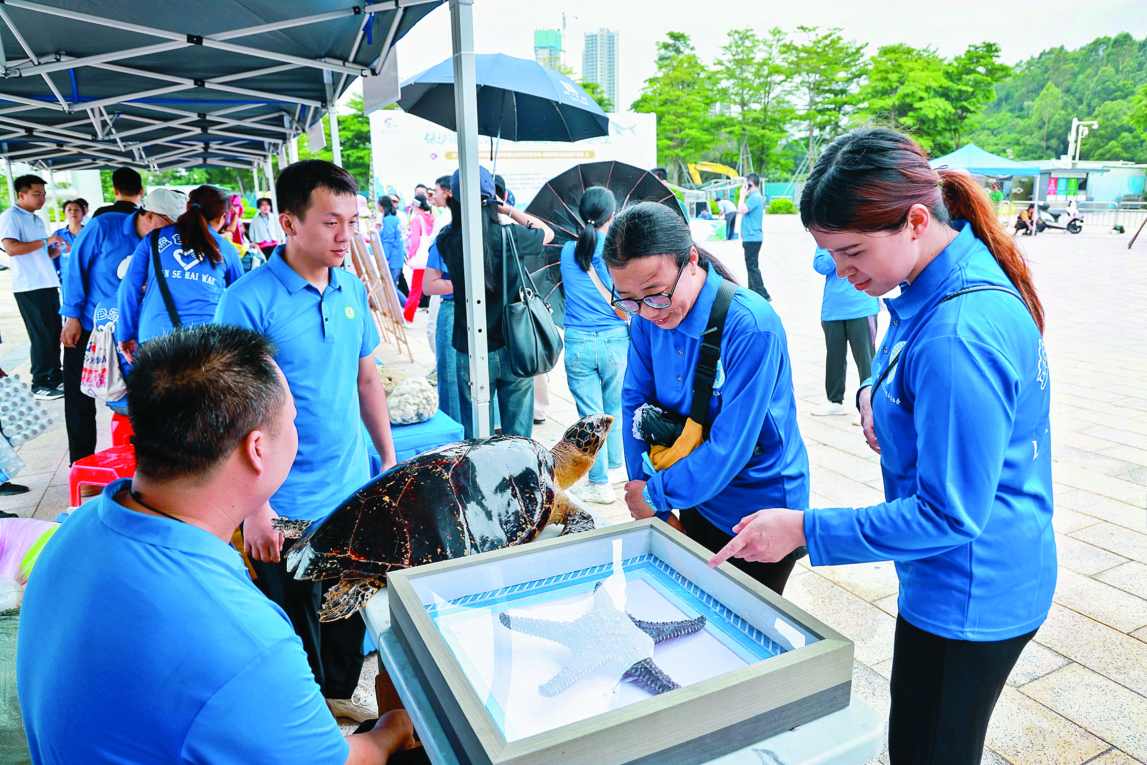 記者看到,活動(dòng)現(xiàn)場(chǎng)布置了“海洋科普展”,通過(guò)海洋科普展板和各種海洋生物標(biāo)本系統(tǒng)地展示了惠州豐富的海洋資源和獨(dú)特的海洋文化,貼近生活又充滿趣味性的科普內(nèi)容引得沿海群眾游客紛紛駐足觀看,進(jìn)一步增強(qiáng)了公眾的海洋保護(hù)意識(shí)。