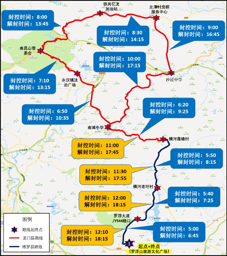 羅浮山風景名勝區(qū)旅游文化廣場(起點)→羅浮大道→ X223縣道→顯崗水庫→橫河鎮(zhèn)→麻榨鎮(zhèn)中心村→X223縣道→橫漢村→桂村→X261縣道→永漢鎮(zhèn)法治廣場→南昆山盤山公路→G355國道→南昆山管委會→X222縣道→龍?zhí)舵?zhèn)洞坑村→新竂村→Y124鄉(xiāng)道→西溪村→G355國道→雙東村→Y127鄉(xiāng)道→沙逕社區(qū)→X219縣道→到灘村→西族小學→X219縣道→橫漢村→X223縣道→麻榨鎮(zhèn)中心村→橫河鎮(zhèn)→羅浮大道→羅浮山風景名勝區(qū)旅游文化廣場(終點),全程共約203公里。(見圖1)