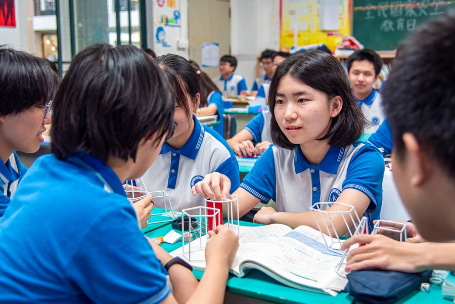 關(guān)注課程,更關(guān)注課堂。“課堂不僅要促進(jìn)學(xué)生關(guān)鍵能力的發(fā)展,也要促進(jìn)學(xué)生必備品格的培養(yǎng)。”基于這一理念,華羅庚中學(xué)倡導(dǎo)以“導(dǎo)學(xué)案”為引領(lǐng)的教學(xué)方式,從自主的程度、合作的效度、探究的深度、拓展的寬度、互動的溫度、生成的高度這六個維度關(guān)注學(xué)生的學(xué)習(xí),聚焦于促進(jìn)學(xué)生核心素養(yǎng)的提升。學(xué)校“加工能力”強(qiáng),做到“低進(jìn)高出,高進(jìn)優(yōu)出”。在高水平軟硬件加持下,學(xué)校辦學(xué)水平穩(wěn)步提高,高考成績連年攀升,12次獲得惠州市高中教學(xué)成果獎一等獎。