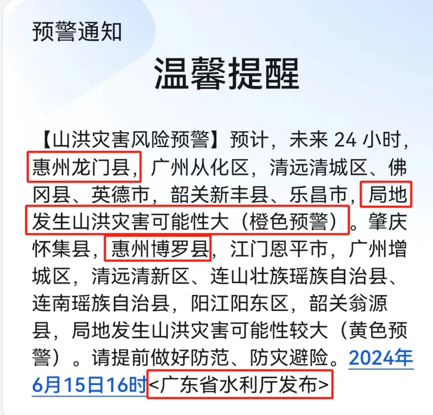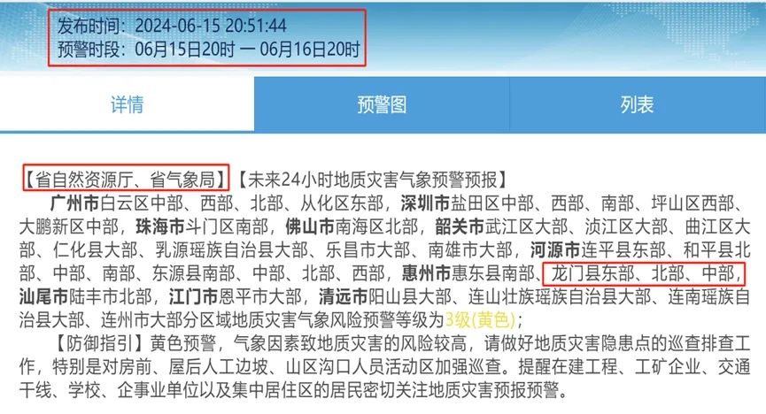 據(jù)廣東省自然資源廳和省氣象局在6月15日20時(shí)聯(lián)合發(fā)布的【地災(zāi)氣象風(fēng)險(xiǎn)預(yù)警】,龍門縣部分地區(qū)為地質(zhì)災(zāi)害氣象風(fēng)險(xiǎn)預(yù)警等級(jí)3級(jí)(黃色),時(shí)段為15日20時(shí)至16日20時(shí)。持續(xù)強(qiáng)降雨可能造成的山洪、山體滑坡、泥石流等次生災(zāi)害,為確保所有參與騎行活動(dòng)人員的人身安全,經(jīng)組委會(huì)緊急研判,活動(dòng)取消。