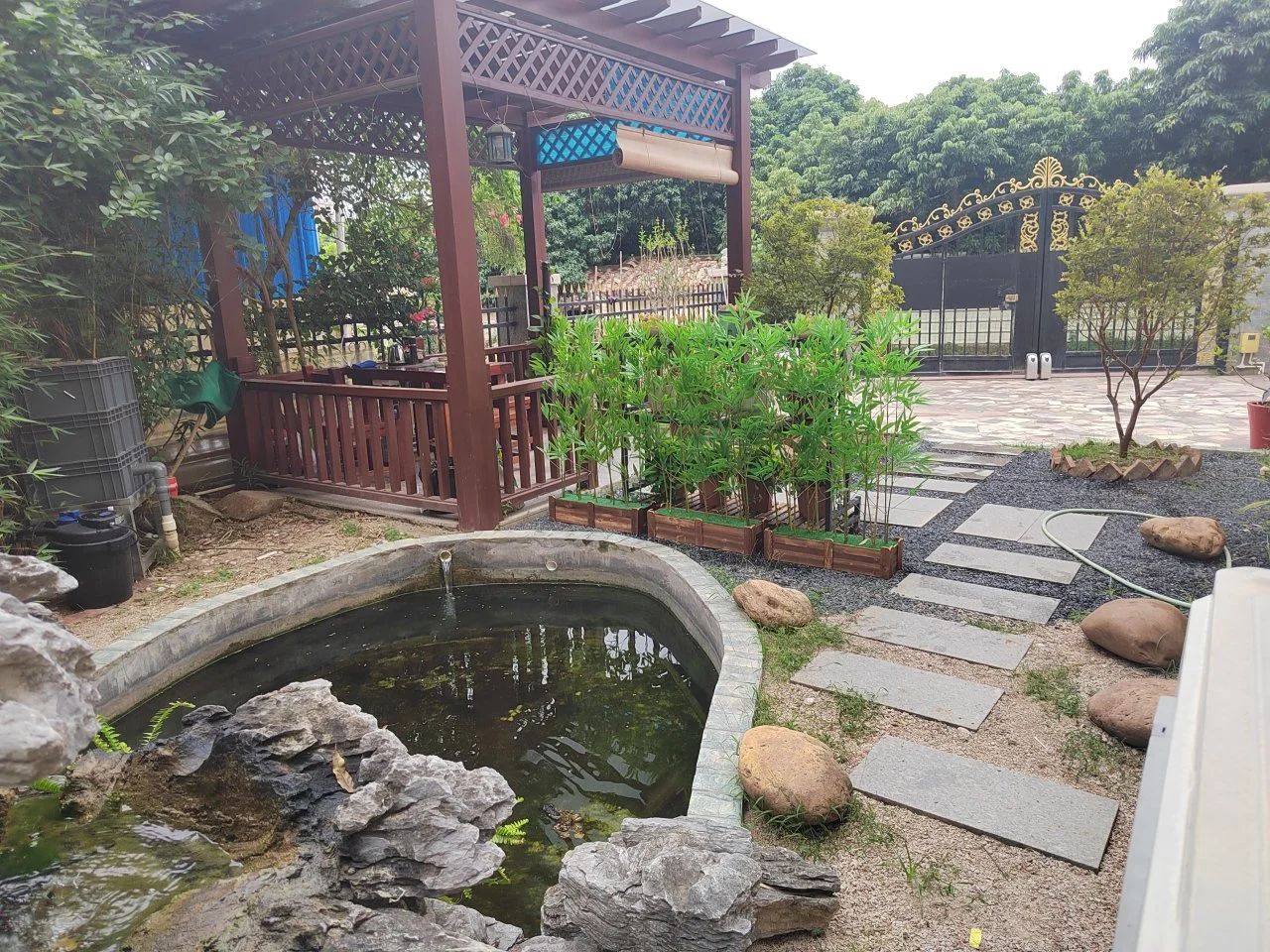一戶一景色,一院一畫卷。走進惠陽區(qū)平潭鎮(zhèn)紅光村翟麗群家,一片綠意盎然景色映入眼簾,院子四周擺放著羅漢松、繡球花、蘭花等幾百盆花卉,長勢喜人。自參與“美麗庭院”創(chuàng)建活動以來,翟麗群和家人用心打理自家庭院,既種有各種花卉、蔬菜水果,又有流水和魚池,非常富有生活氣息,也帶動了更多村民參與“美麗庭院”創(chuàng)建。“小魚池是老公幫我一起弄的,小孩也會幫忙打理花草,美麗的環(huán)境有美麗的心情,可以在院子里品茶會友,找到生活的樂趣。”翟麗群說。