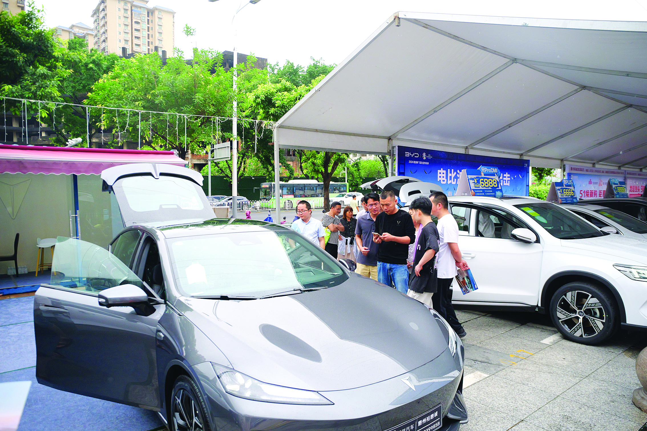 我市以舊換新政策刺激汽車市場釋放消費潛力。這是市民在展區(qū)看車。惠州東江圖片社供圖