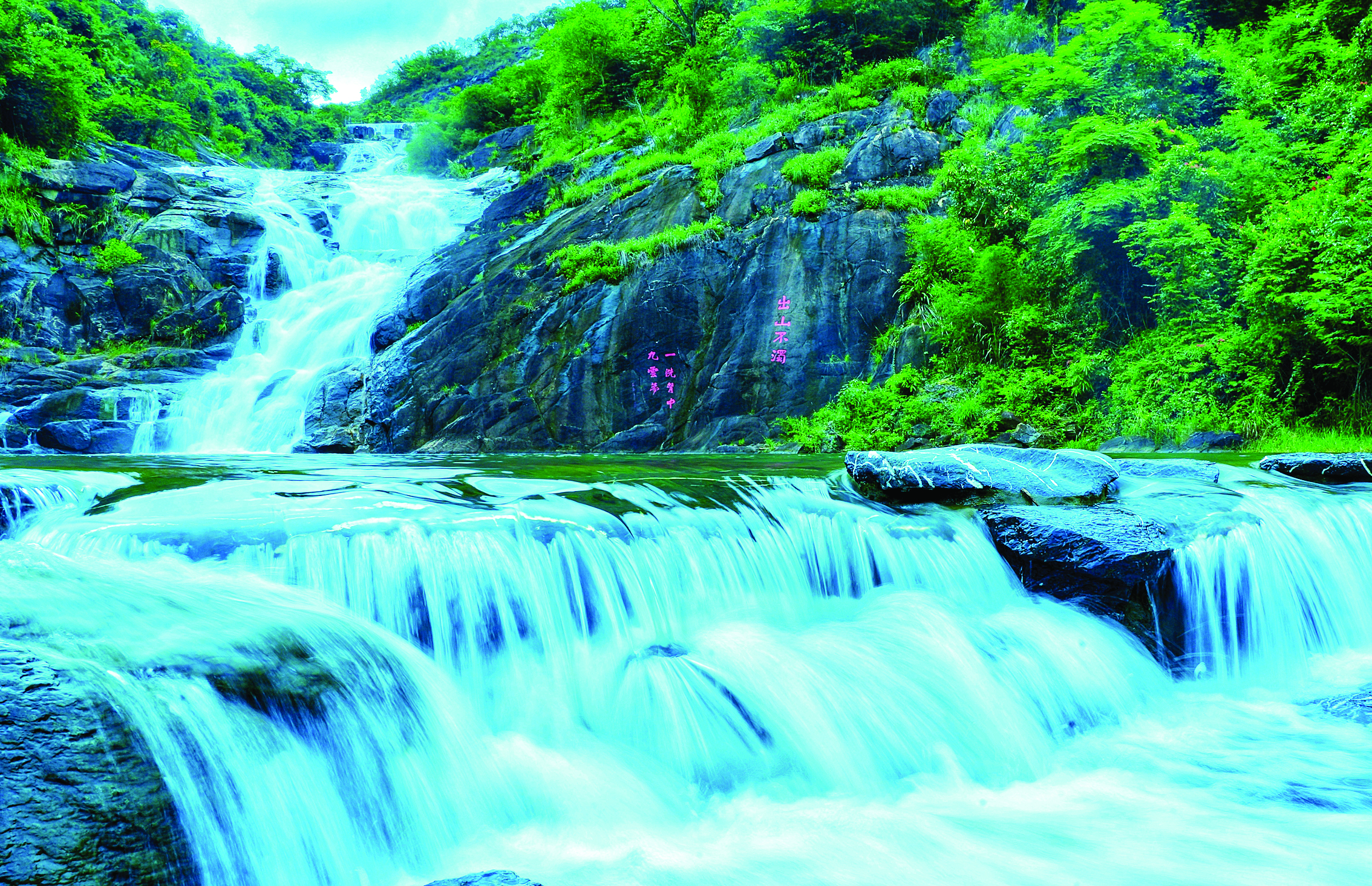 怪石嶙峋,瀑布從山頂飛流直下,水石相激,十分壯觀。近日,位于惠城區(qū)小金口的惠州湯泉九龍?zhí)镀俨嘉芏嗳笋v足欣賞。這里是蘇東坡三游之地,留下了“湯泉吐艷鏡光開,白水飛虹帶雨來”“一洗胸中九云夢”等膾炙人口的詩詞。清朝著名詩人江逢辰在詩中稱“我聞白水山,不減匡廬瀑”,贊美這個(gè)瀑布不比廬山瀑布遜色。著名書法家秦咢生揮毫題下“千年東坡泉,嶺南第一湯”。