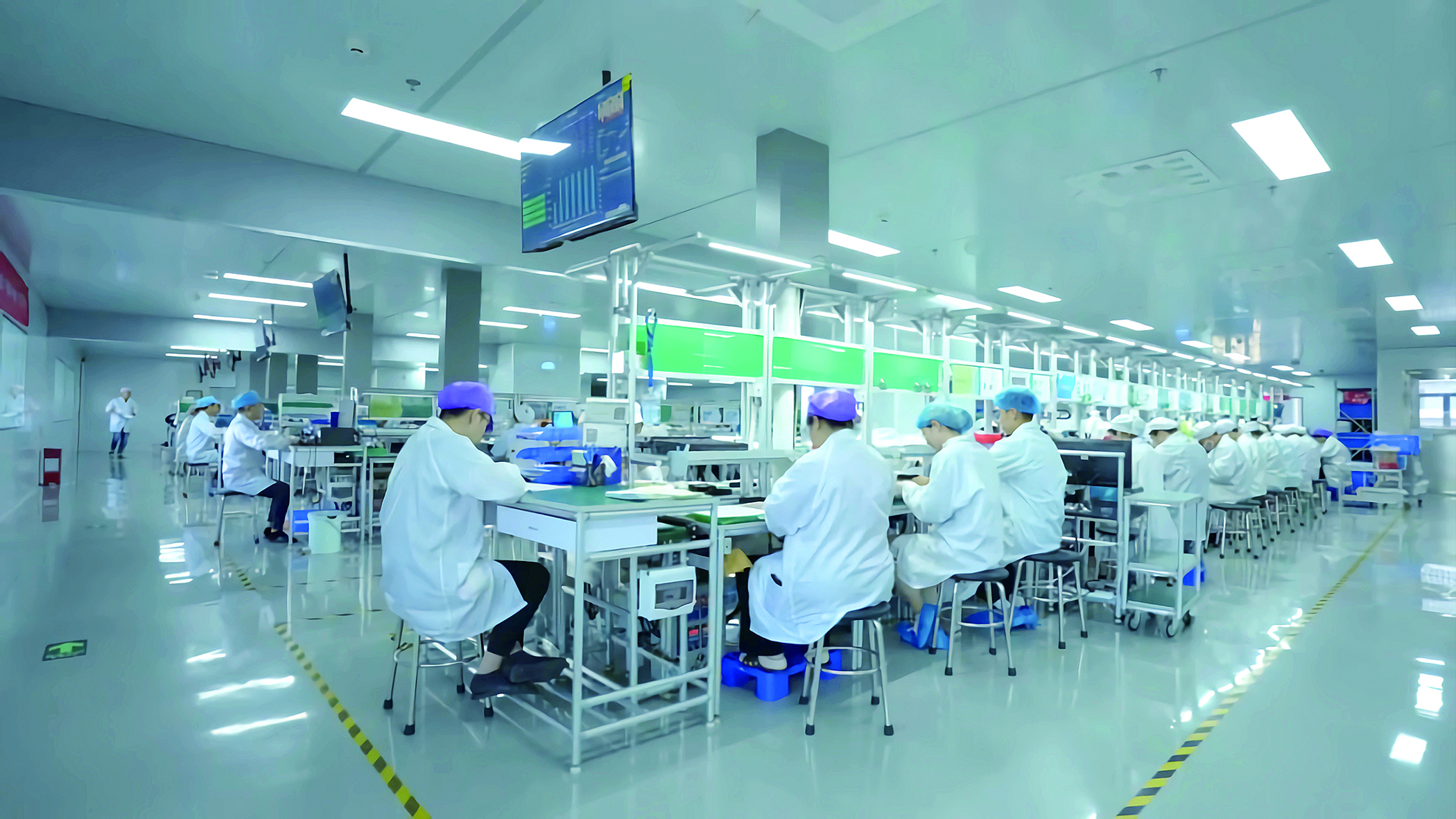 生產(chǎn)線上工人們正忙著生產(chǎn)最新的助聽器產(chǎn)品。