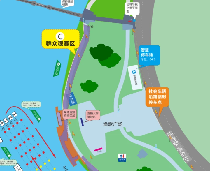 3、聽從現(xiàn)場(chǎng)工作人員指揮,在指定區(qū)域停放車輛、觀看龍舟。