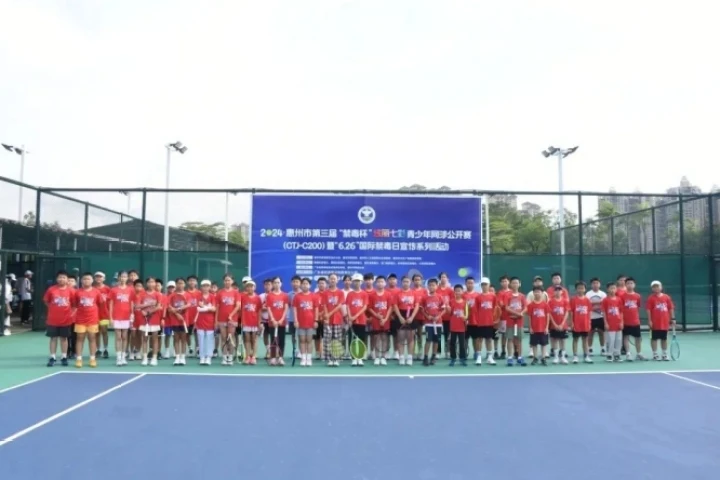 6月29日上午,“全民禁毒筑防線·揮拍競技展風采”——“6·26”國際禁毒日宣傳系列活動暨2024年惠州市第三屆“禁毒杯”炫麗七彩青少年網(wǎng)球公開賽(CTJ-C200)首場比賽在惠州市奧林匹克體育場網(wǎng)球中心正式開賽。首站比賽為期兩天,來自全國各地優(yōu)秀的青少年網(wǎng)球選手在賽場上盡情揮灑汗水,展現(xiàn)網(wǎng)球運動的魅力。