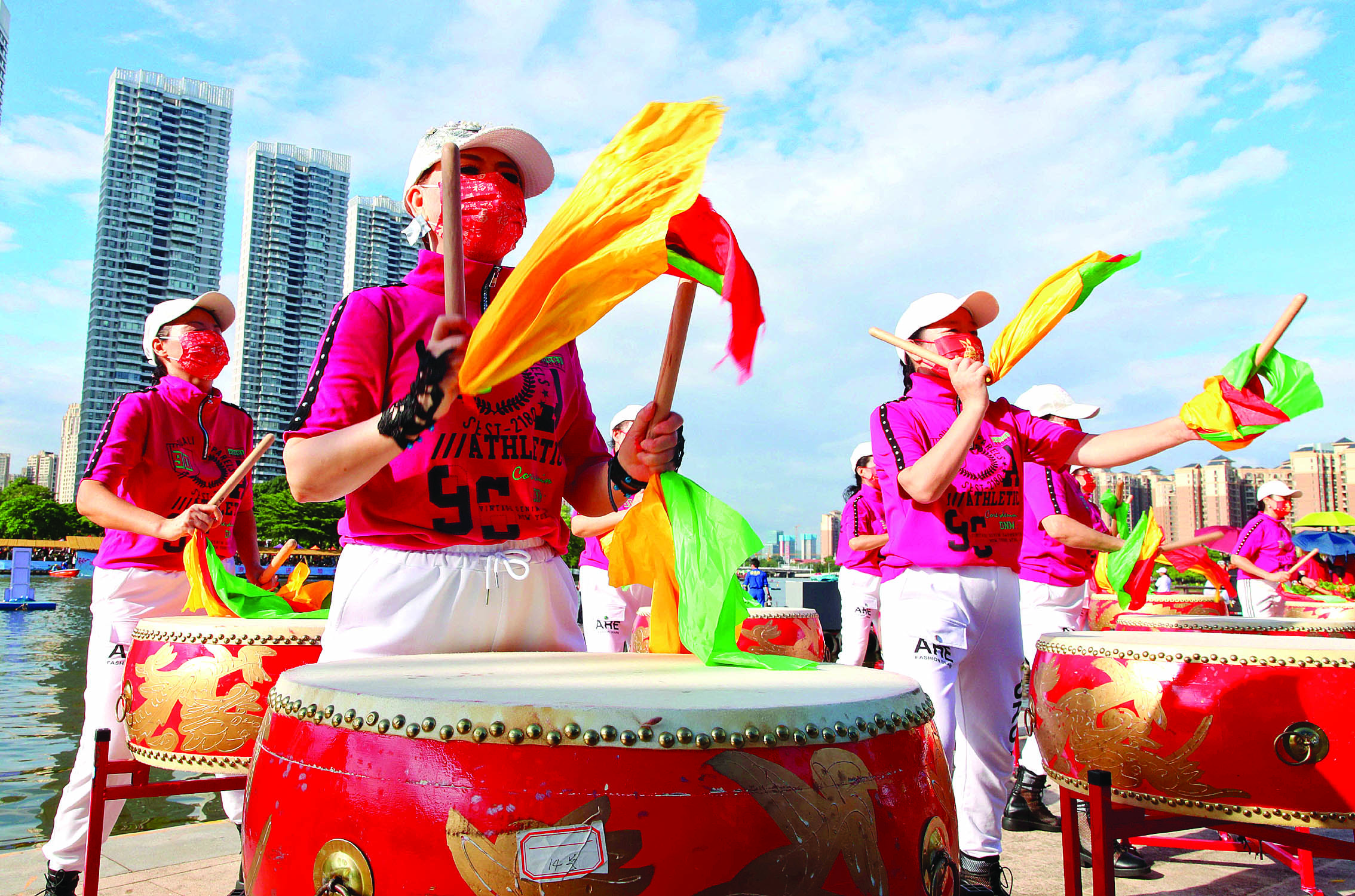 作為中國(guó)傳統(tǒng)文化比賽項(xiàng)目,本次龍舟賽上處處可見傳統(tǒng)文化元素。