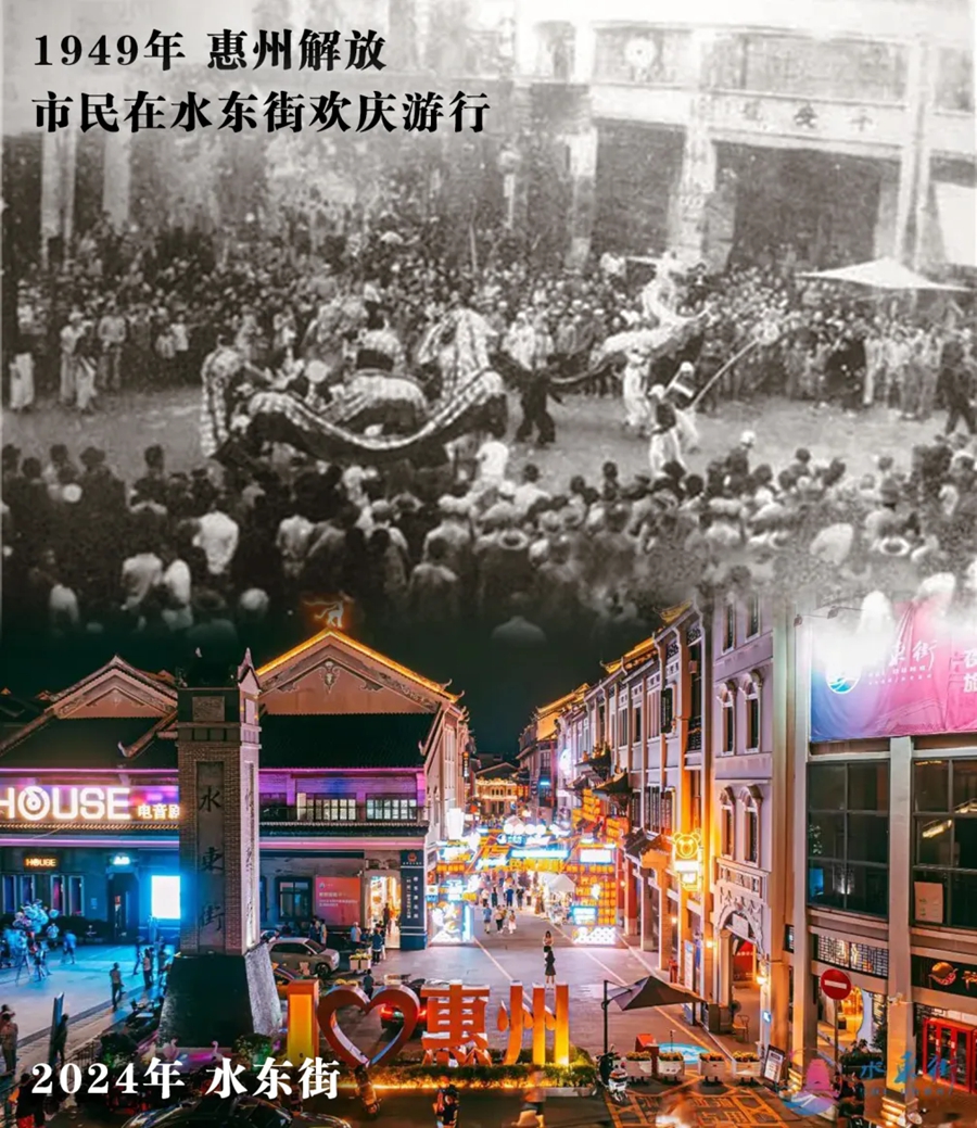 下圖:2024年,水東街依然是惠州市民舉辦活動(dòng)、喜愛(ài)匯聚的地點(diǎn),但整體環(huán)境已煥然一新。據(jù)統(tǒng)計(jì),截至2023年,水東街有各類(lèi)商家513家,游客及消費(fèi)者數(shù)量超450萬(wàn)人次,文商旅消費(fèi)收入近9億元,入選第二批國(guó)家級(jí)旅游休閑街區(qū),日益成為名副其實(shí)的網(wǎng)紅街區(qū)。