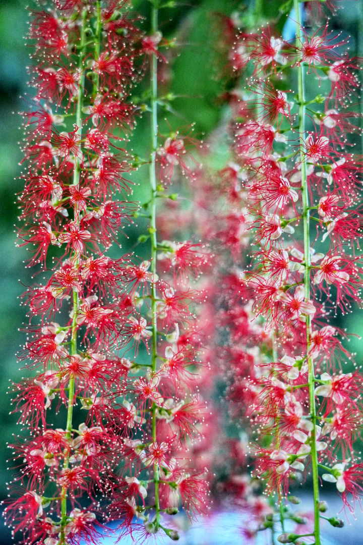 紅花玉蕊也被人稱之為“仲夏夜之花”,花期短暫,夜晚開放,第二天就凋謝了。通常下午4-5點開花,至翌日凌晨5-6點花落。花蕾從上往下依次綻放,常多朵花同時開放。單朵花暮開朝落,花期短暫;整棵樹花期約一周至半個月左右。開花時散發(fā)特殊氣味。