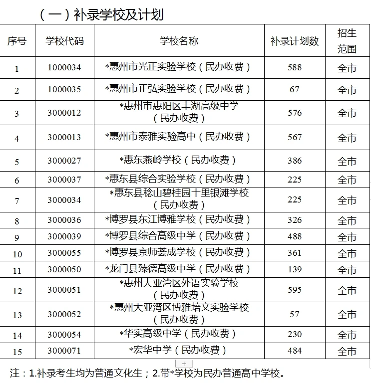 根據(jù)全市普通高中學(xué)校錄取結(jié)果,現(xiàn)就補錄學(xué)校及計劃公告如下: