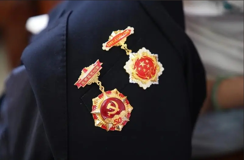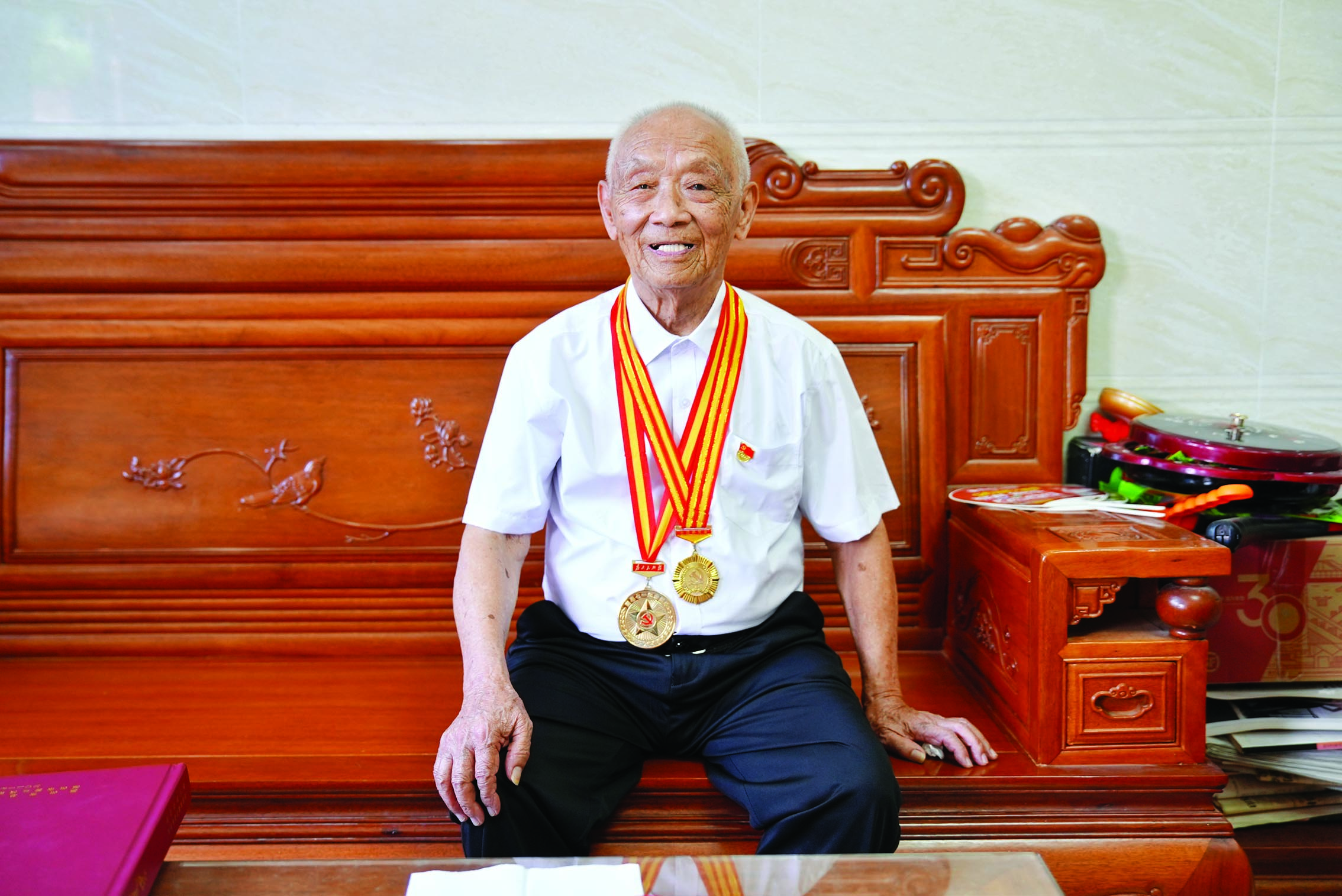 得知記者要來家里采訪,朱厚早早換上了新的白襯衫,戴好黨員徽章,老照片、獎?wù)潞妥C書等整齊地擺放在茶幾上。7月初,這位102歲的老黨員,來到惠州市“兩優(yōu)一先”表彰大會暨“三個第一”發(fā)布儀式現(xiàn)場,獲頒“三個第一”紀(jì)念證書。