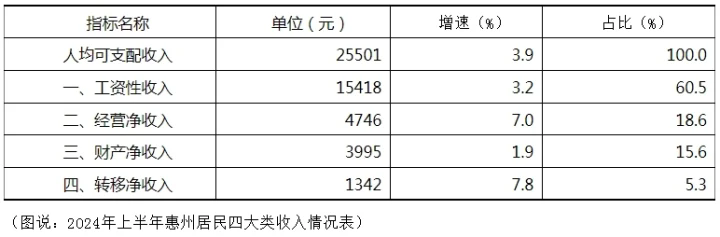 2024年上半年惠州居民人均可支配收入25501元