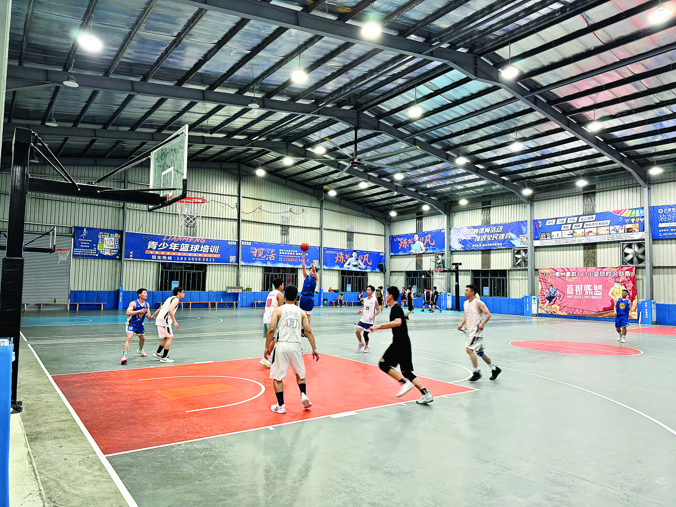 運動愛好者在室內籃球館揮灑汗水。惠州日報記者馮麗均 邱若蓉 攝