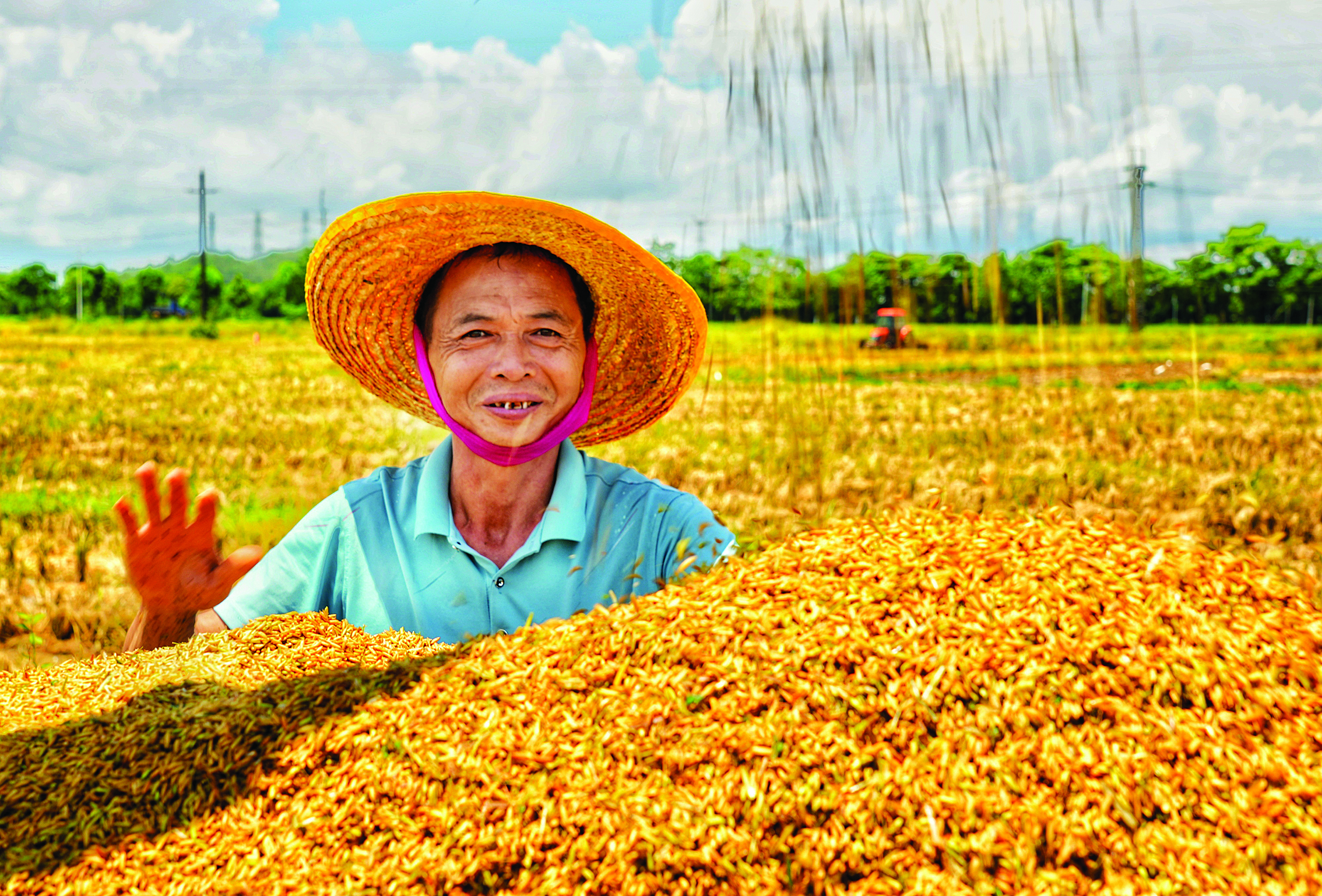 顆粒飽滿(mǎn)的稻谷裝滿(mǎn)了運(yùn)輸車(chē)輛。