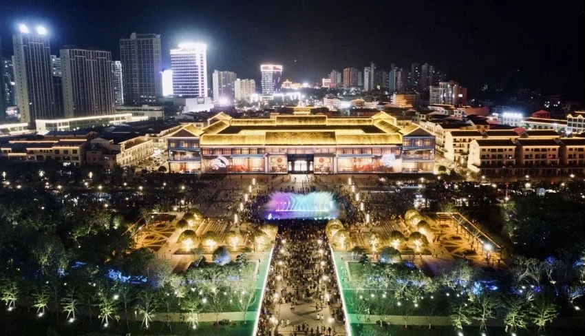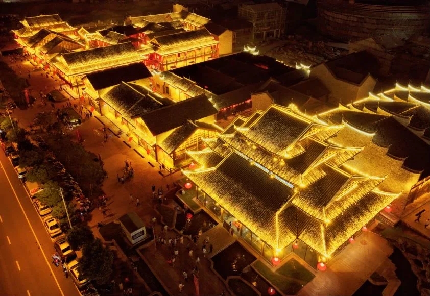 龍南市世界客家民俗文化城景點(diǎn)夜景。